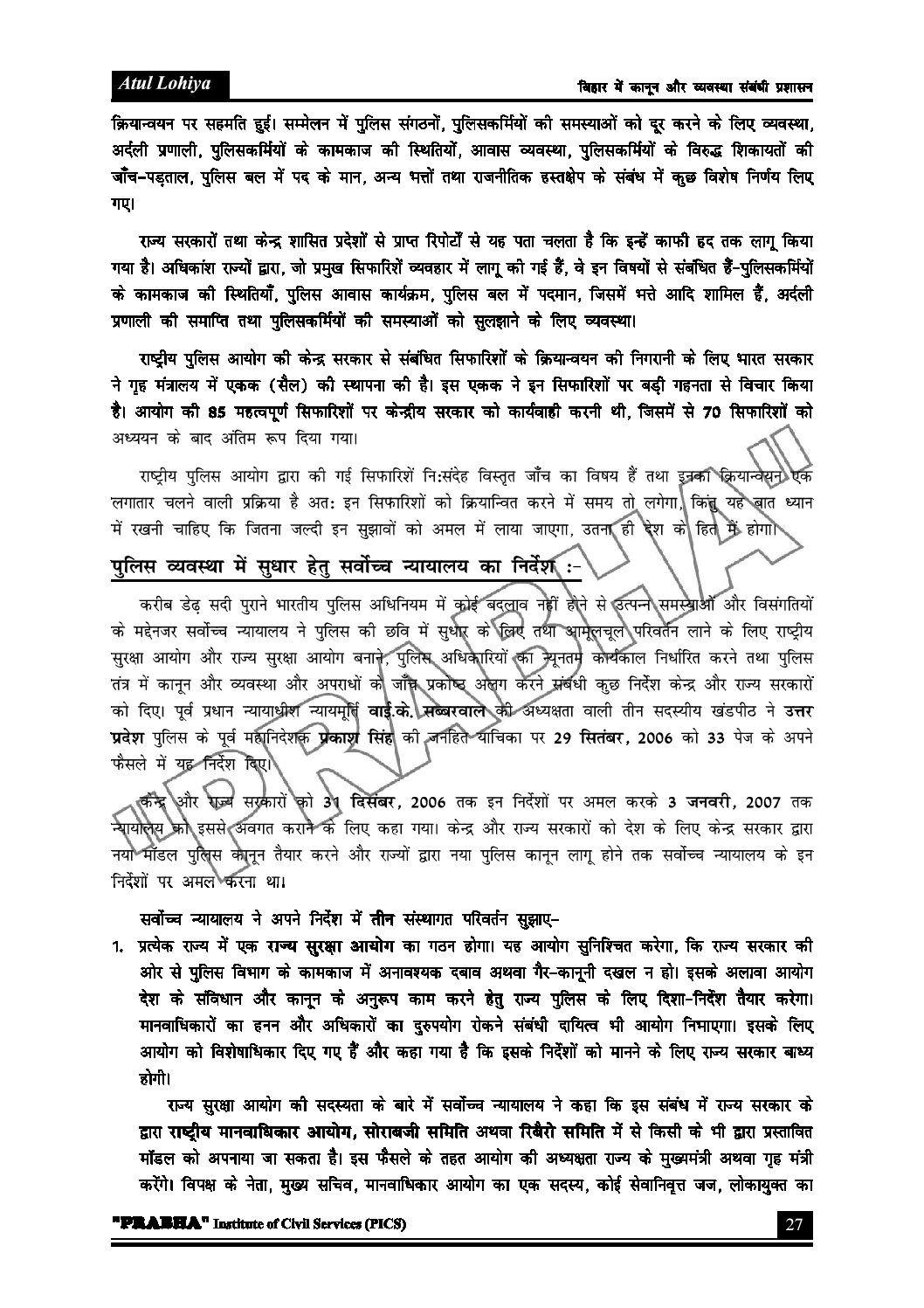 LOK PRASHASAN NOTES (SECTION-II) BIHAR MEIN KANOON AUR VYAVASTHA BY Dr.ATUL LOHIYA PUBLIC ADMINISTRATION HINDI MEDIUM (BLACK & WHITE)