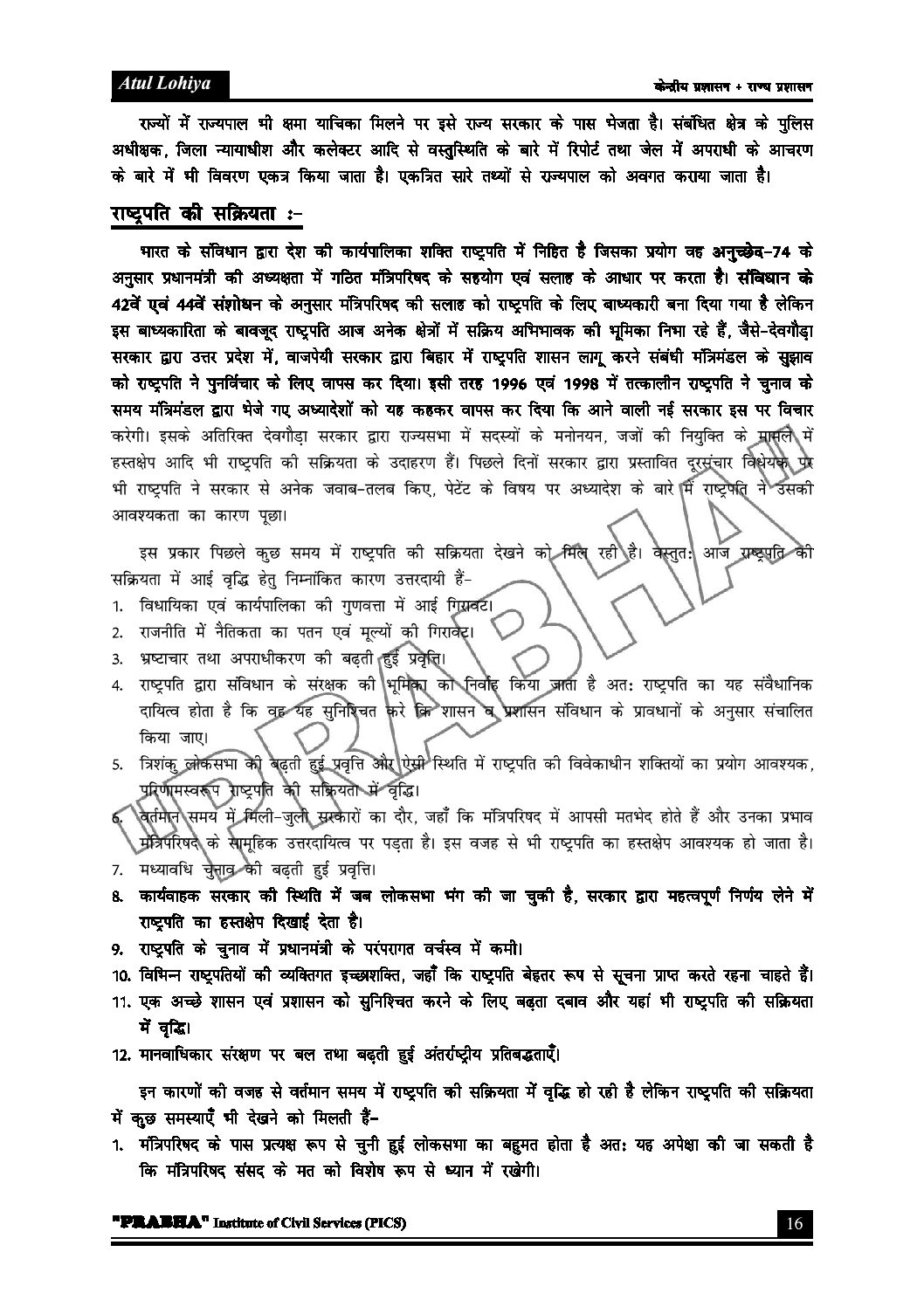 LOK PRASHASAN NOTES (SECTION-II) SANGH STAR PER RAJNITIK KARYAPALIKA KENDRAPRASHASHAN KI SANRCHNA RAJYE PRASHASHAN BIHAR KE VISHESH S BY Dr.ATUL LOHIYA PUBLIC ADMINISTRATION HINDI MEDIUM (BLACK & WHITE)