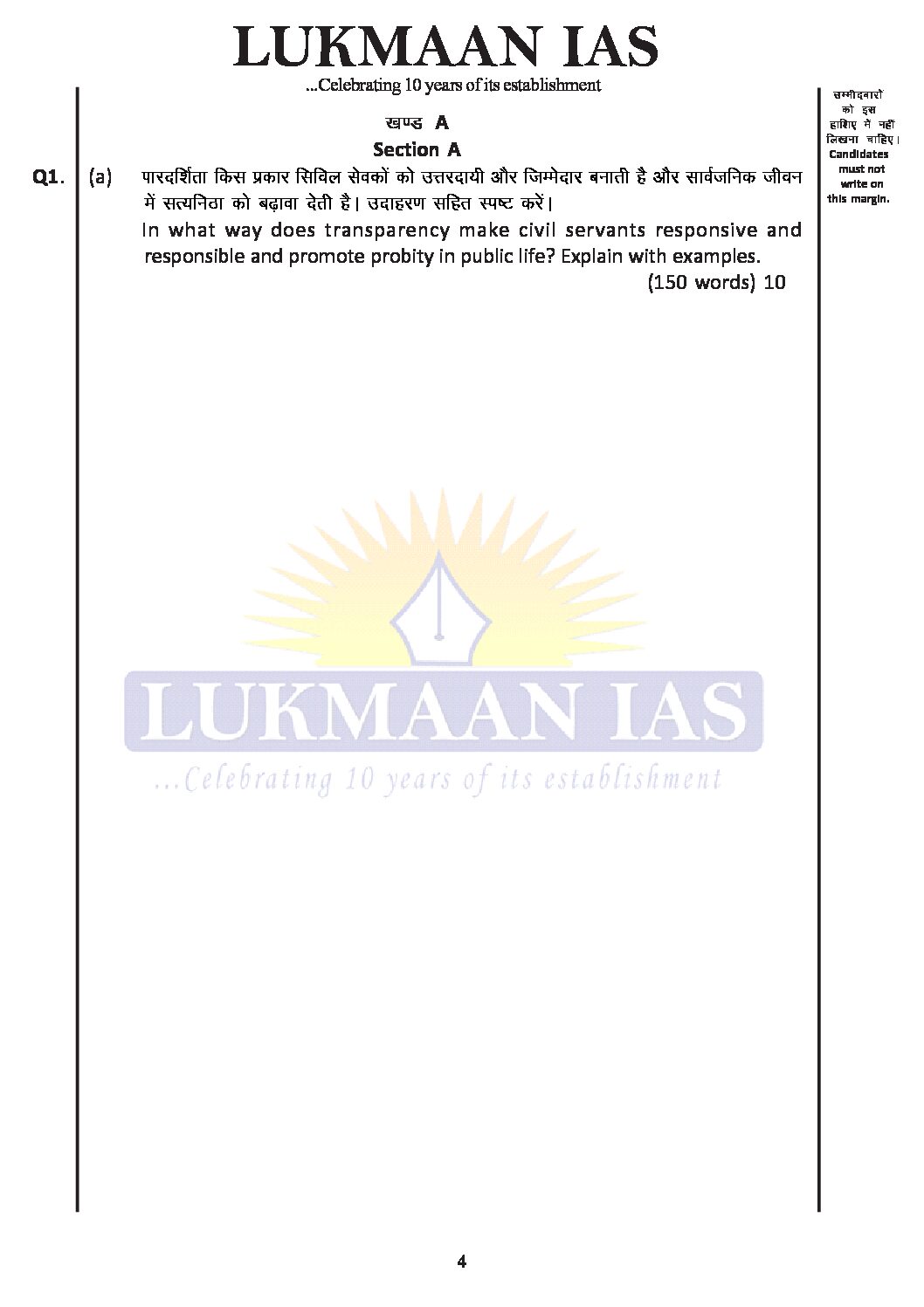 LUKMAAN IAS 2021 QCA TEST-IV ETHICS, INTEGRITY & APTITUDE -PAPER-IV-QUESTION CUM-ANSWERS BOOKLET 2021 (BLACK & WHITE)