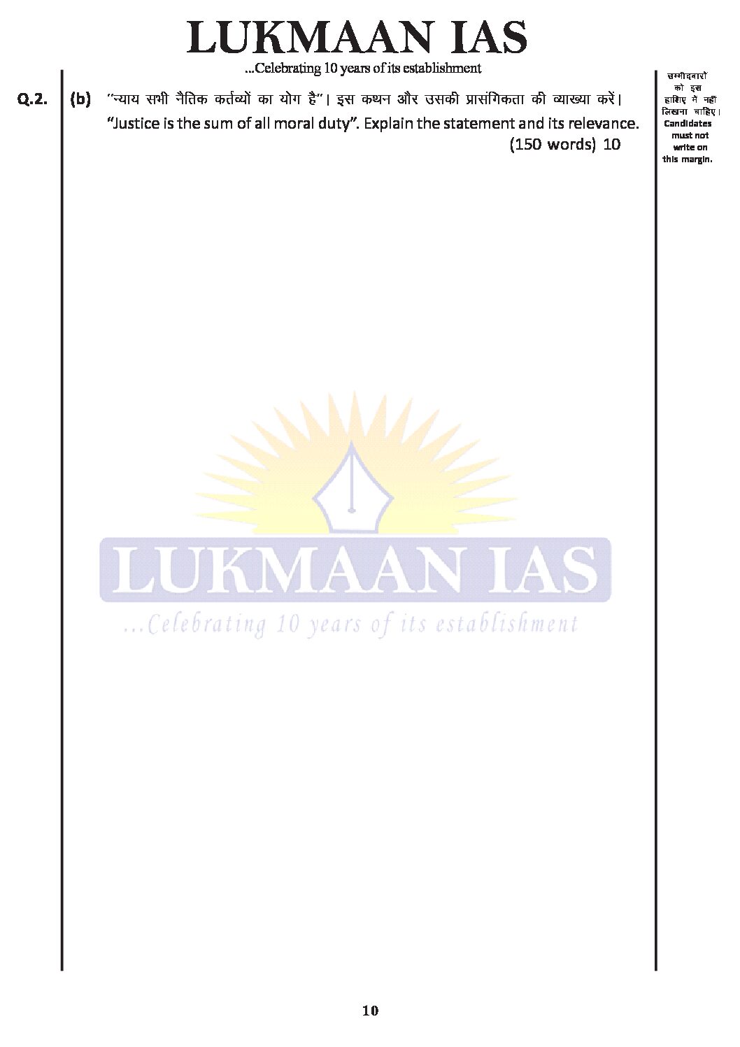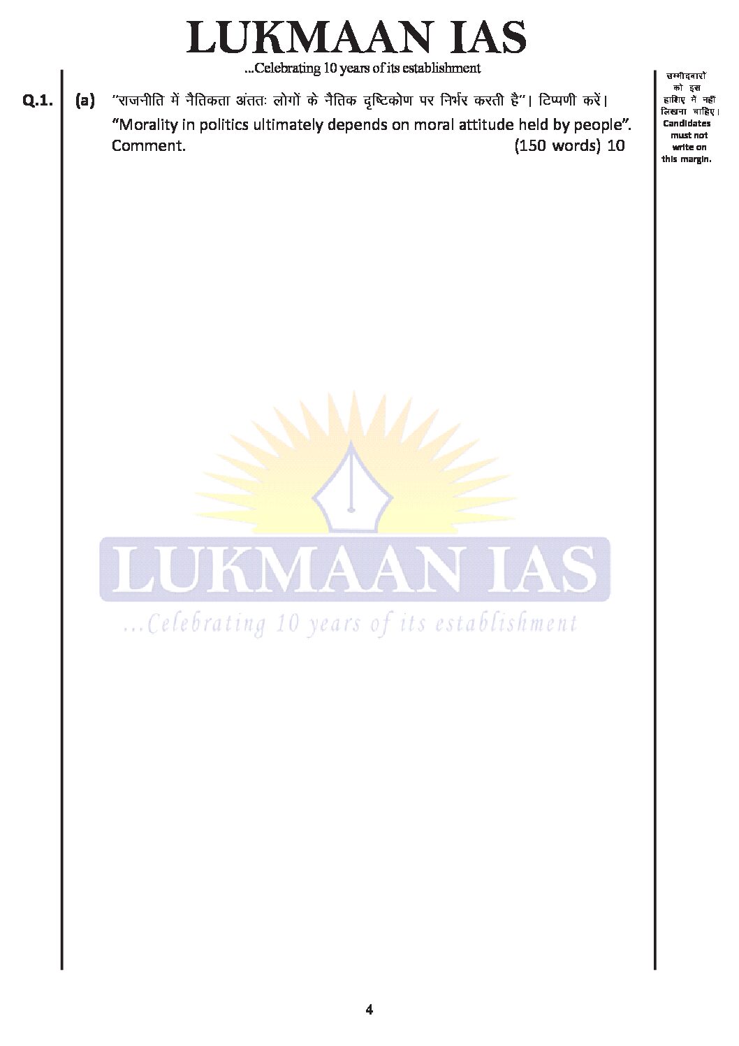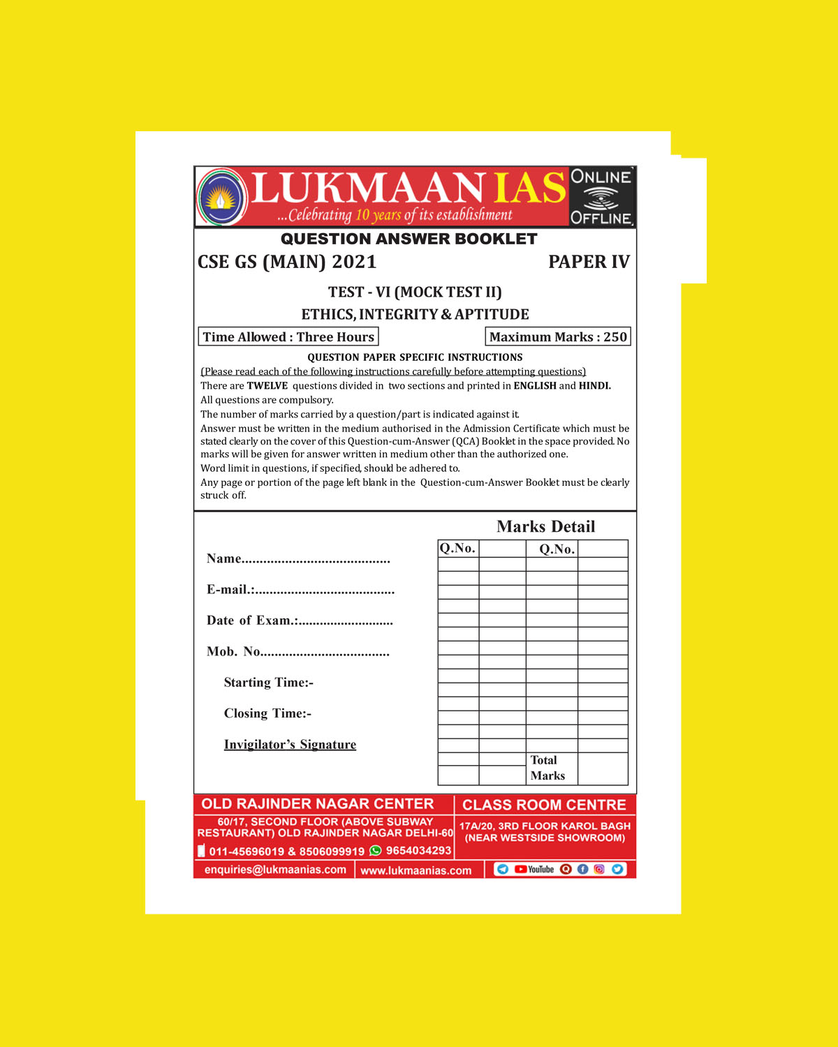 LUKMAAN IAS 2021 QCA TEST-VI ( MOCK TEST -2) ETHICS, INTEGRITY & APTITUDE -PAPER-IV-QUESTION CUM-ANSWERS BOOKLET 2021 (BLACK & WHITE)