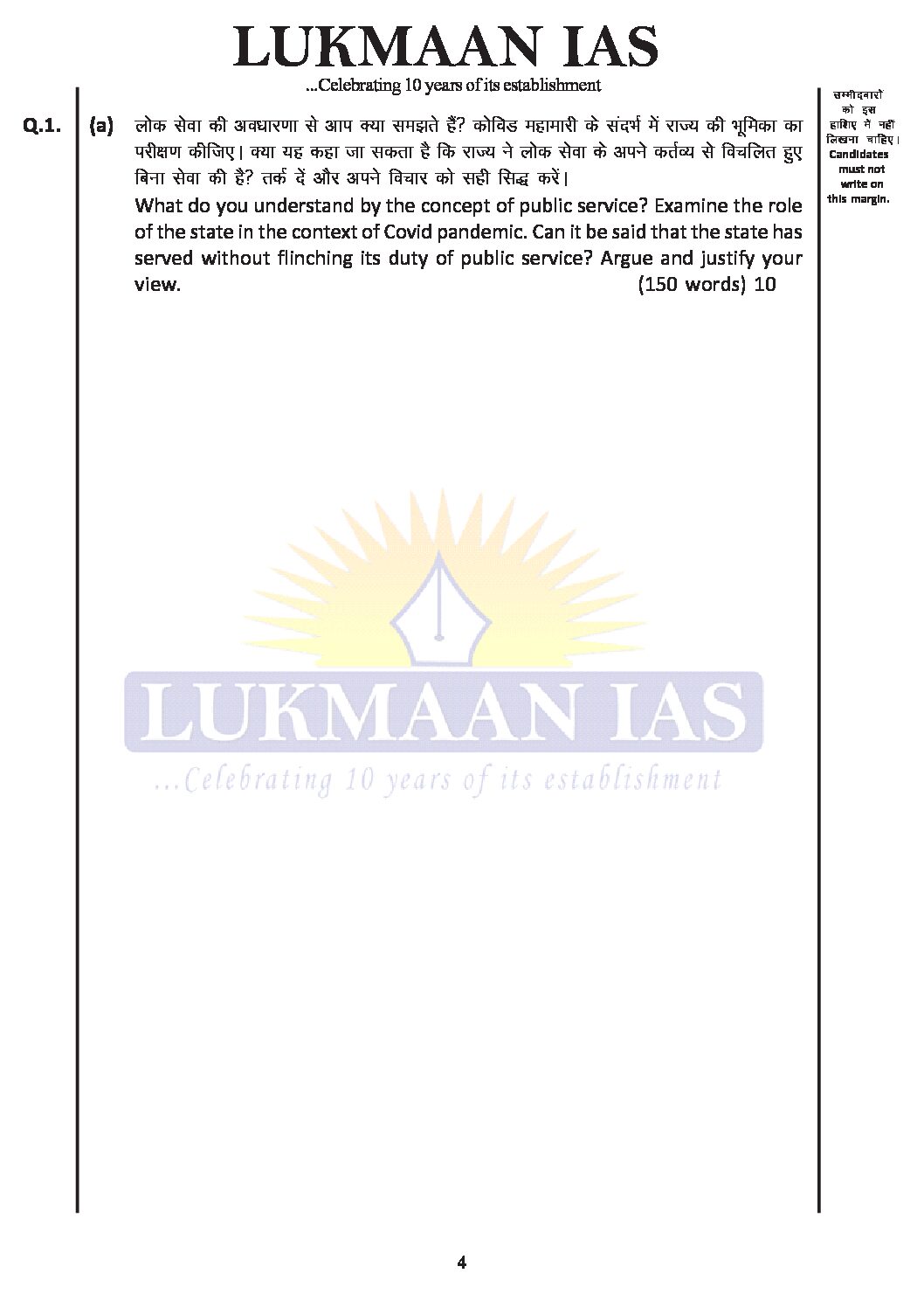 LUKMAAN IAS 2021 QCA TEST-VII ( MOCK TEST -3) ETHICS, INTEGRITY & APTITUDE -PAPER-IV-QUESTION CUM-ANSWERS BOOKLET 2021 (BLACK & WHITE)