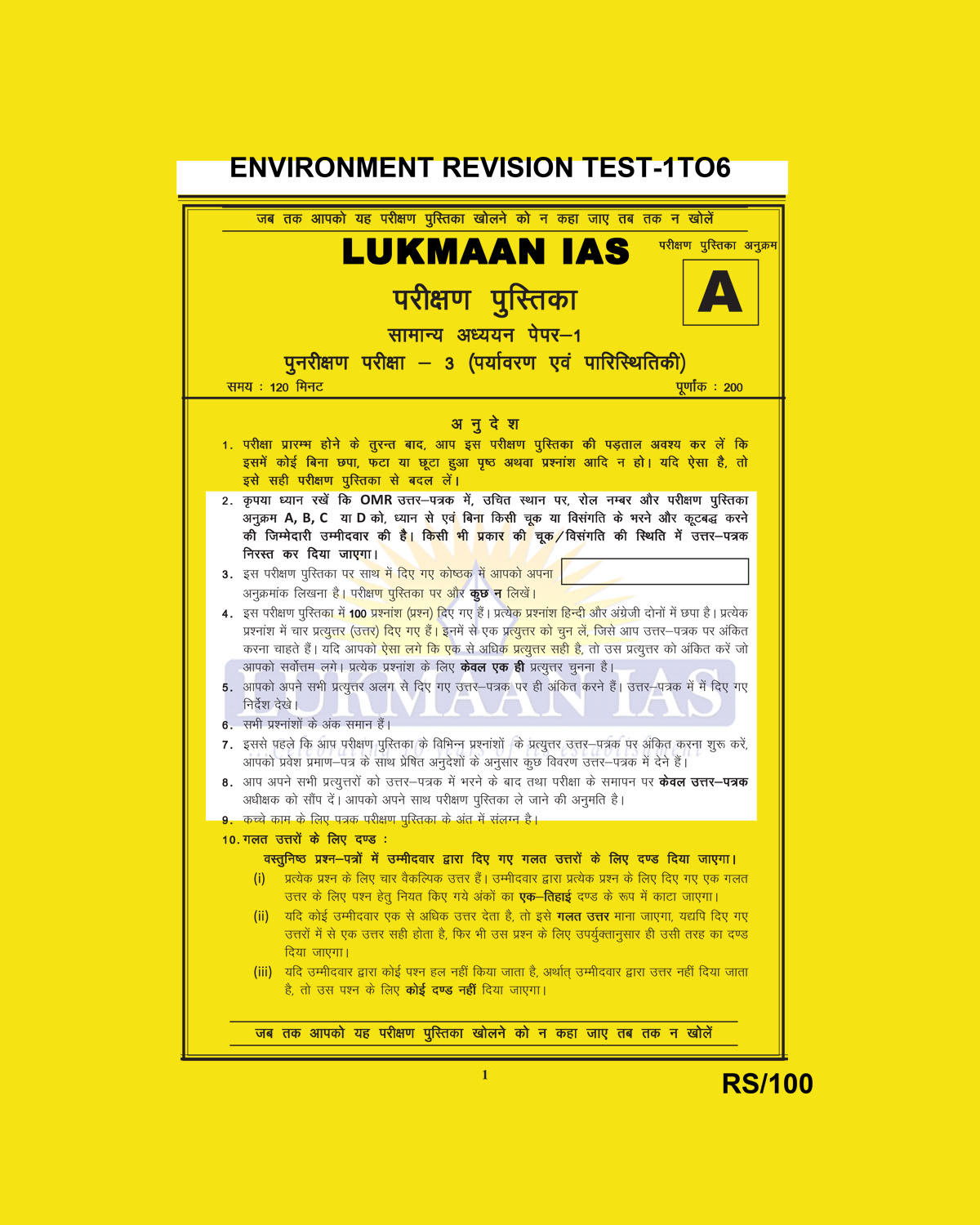 LUKMAAN IAS 2022 TEST- 1 TO 6 (2022) ENVIRONMENT REVISION (BLACK & WHITE)