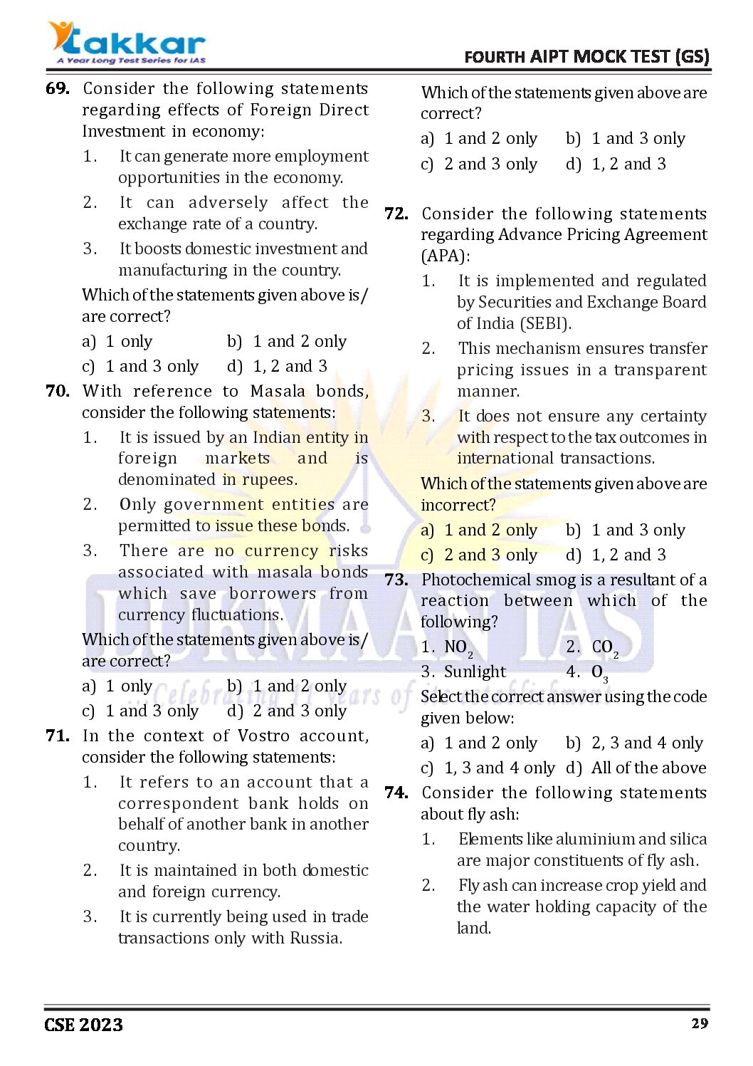 LUKMAAN IAS 2023 1ST TAKKAR ALL INDIA PT MOCK TEST-4 (BLACK & WHITE)