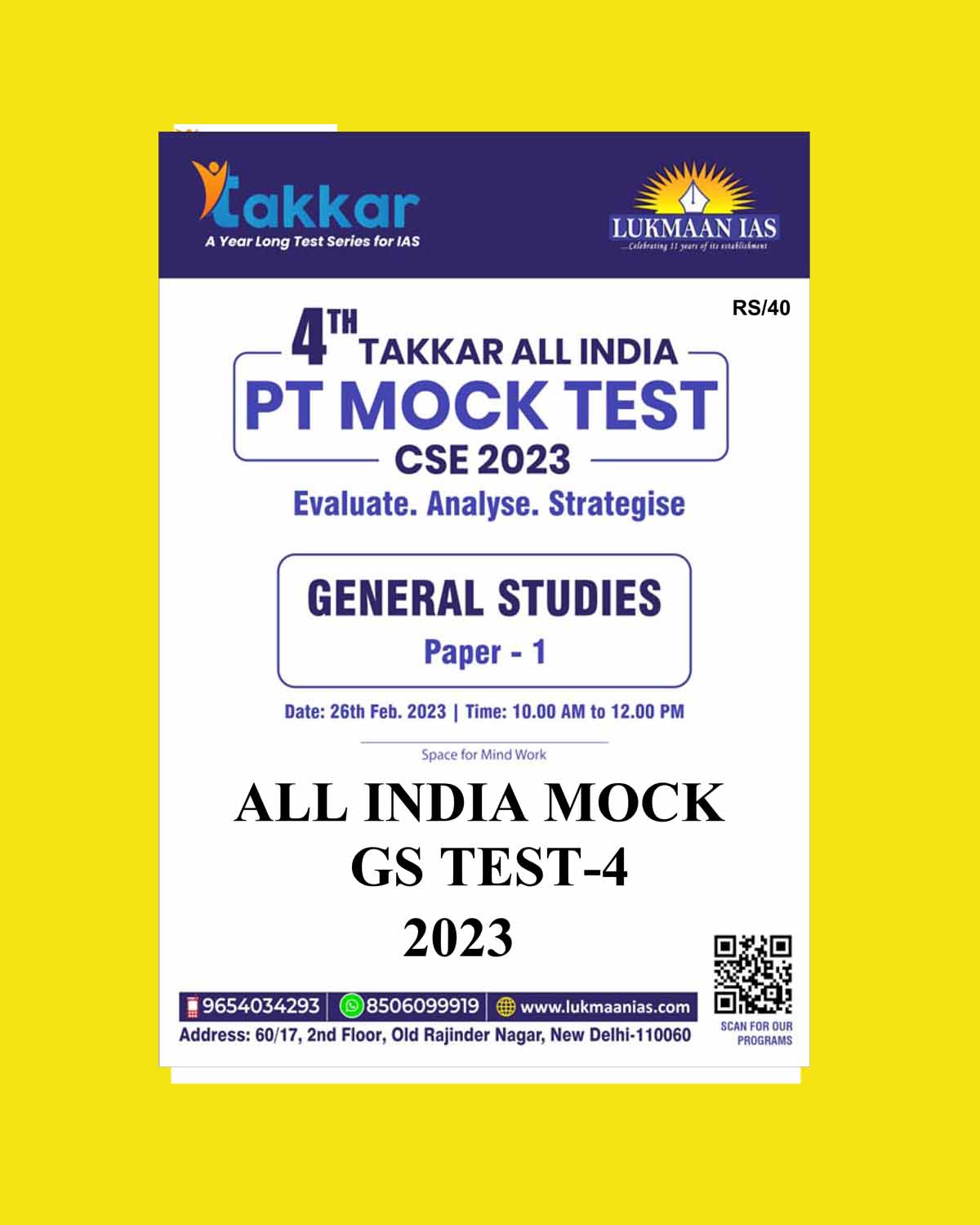 LUKMAAN IAS 2023 1ST TAKKAR ALL INDIA PT MOCK TEST-4 (BLACK & WHITE) quantity