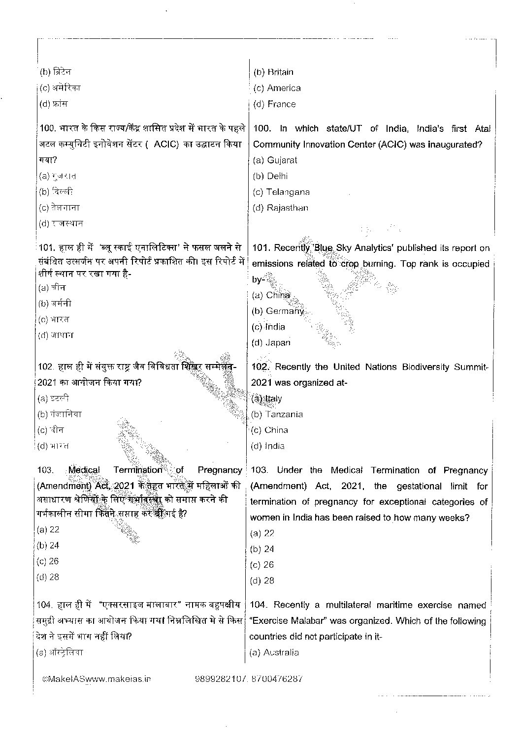 MAKE IAS UPPCS 2022 PT TEST-03- 2022 HINDI & ENGLISH (BLACK & WHITE)