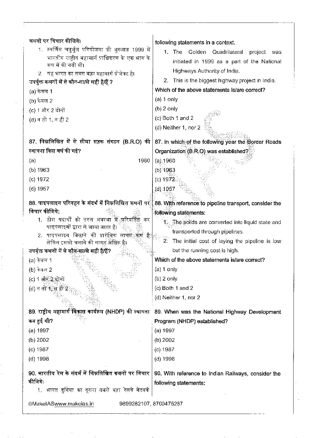 MAKE IAS UPPCS 2022 PT TEST-08- 2022 HINDI & ENGLISH (BLACK & WHITE)