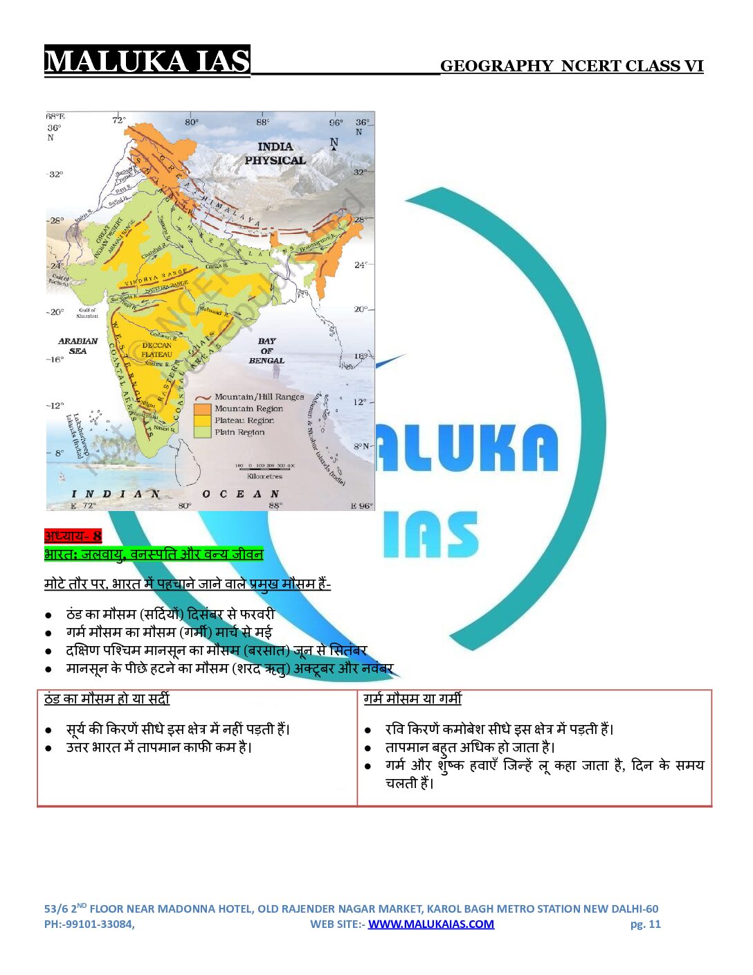 / MALUKA IAS NCERT GIST HINDI MEDIUM GEOGRAPHY CLASS VI-X (BLACK & WHITE)