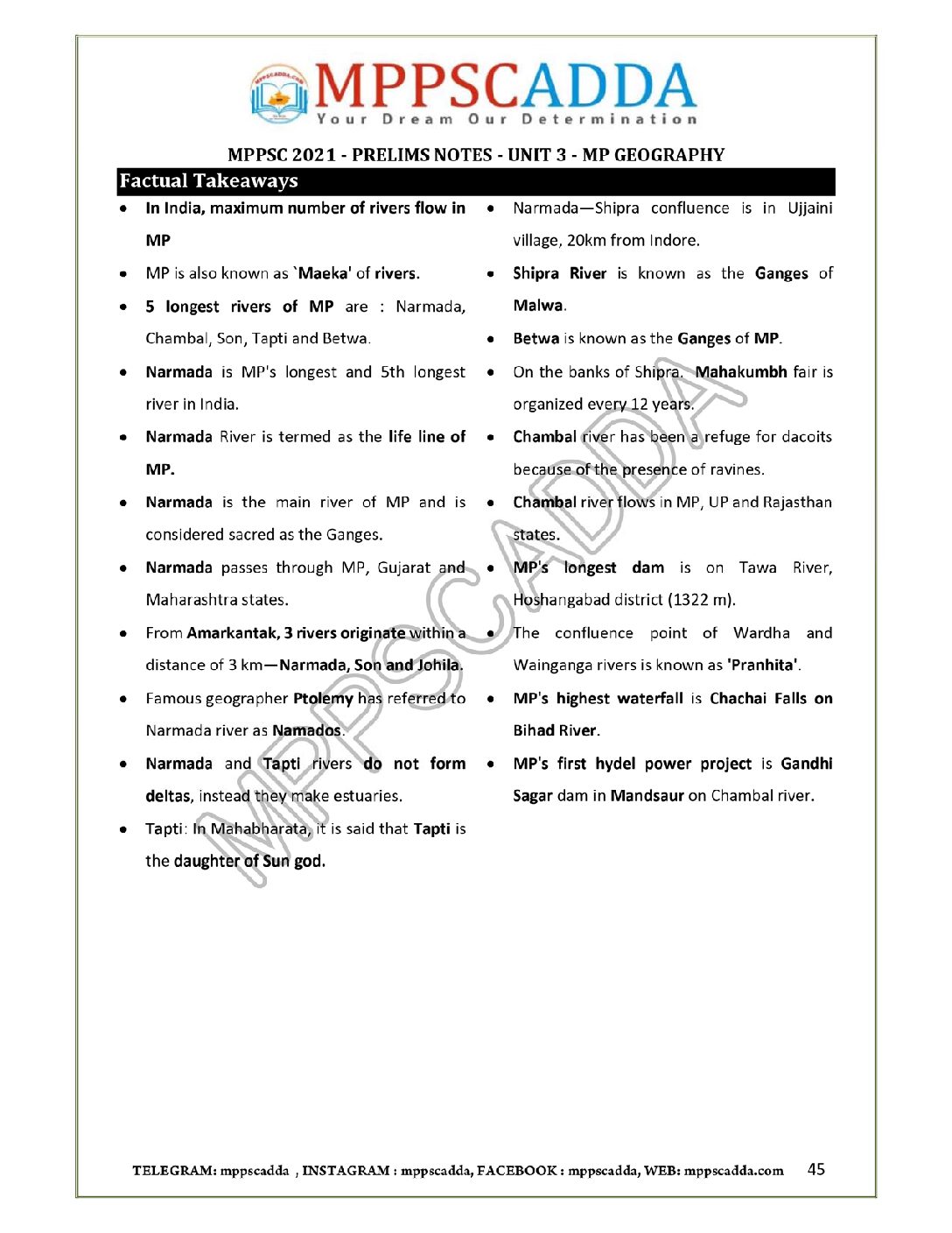 / MPPSCADDA MPPSC 2021 PRELIMS EXAM NOTES MADHYA PRADESH – MP- GEOGRAPHY PRELIMS -PAPER-1-UNIT-3 (BLACK & WHITE)