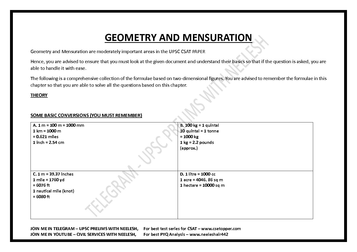 NEELESH KUMAR MATHEMATICS FORMULA AND TOPPERS NOTES CSAT 2021 FINAL ENGLISH {BLACK AND WHITE}