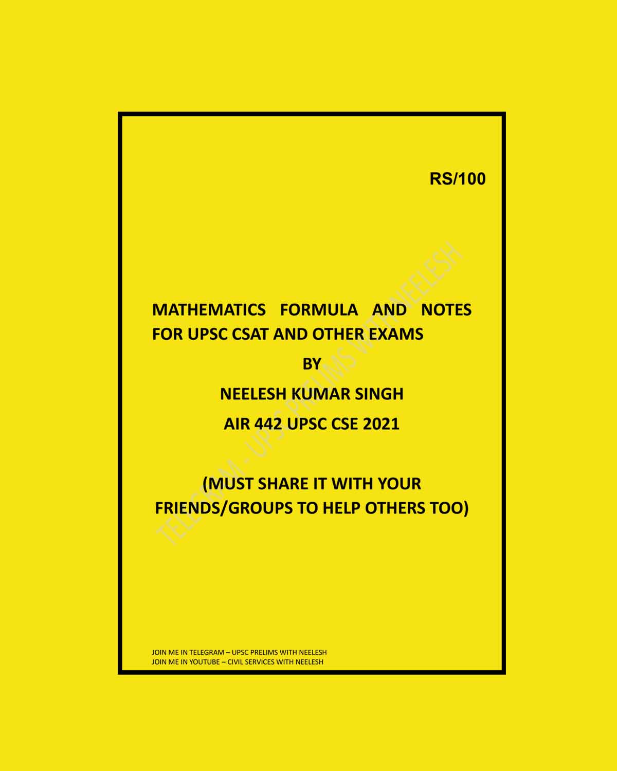 / NEELESH KUMAR MATHEMATICS FORMULA AND TOPPERS NOTES CSAT 2021 FINAL ENGLISH {BLACK AND WHITE}