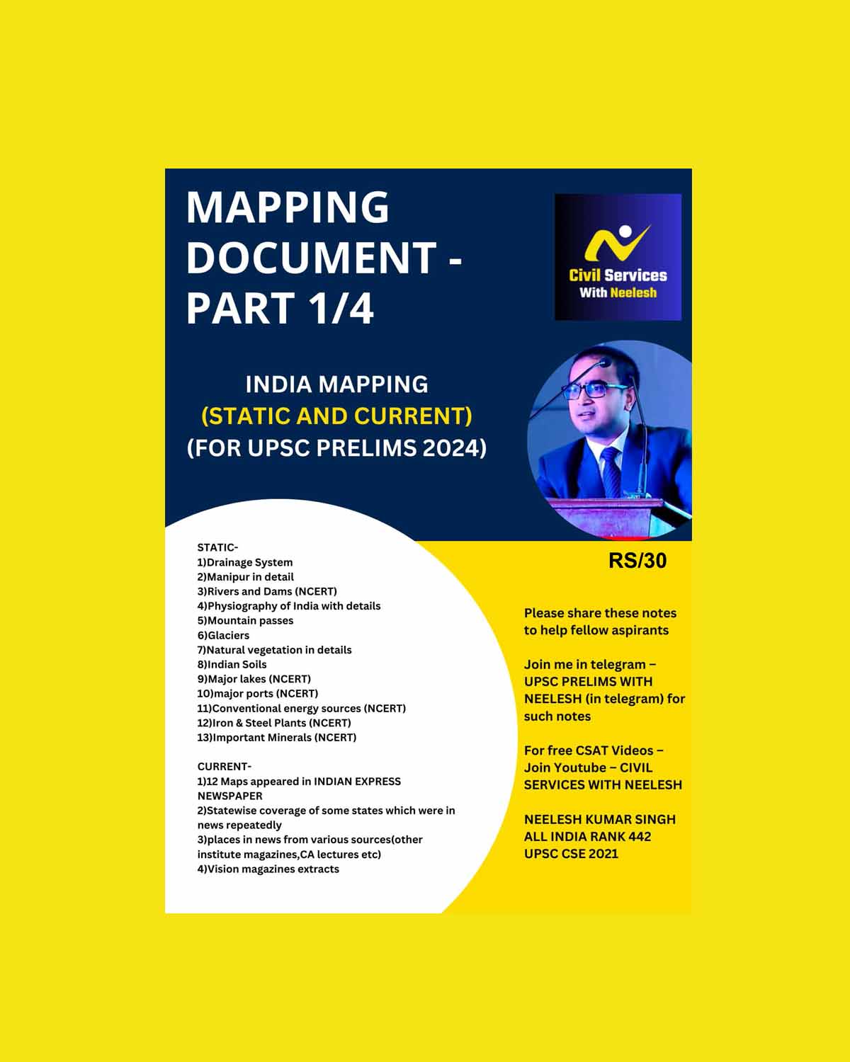 / NEELESH KUMAR SINGH RANK 442 CSE 2024 INDIA MAPPING STATIC & CA SHORT NOTES 2024 FINALL TOPPERS NOTES {ENGLISH} {BLACK AND WHITE}