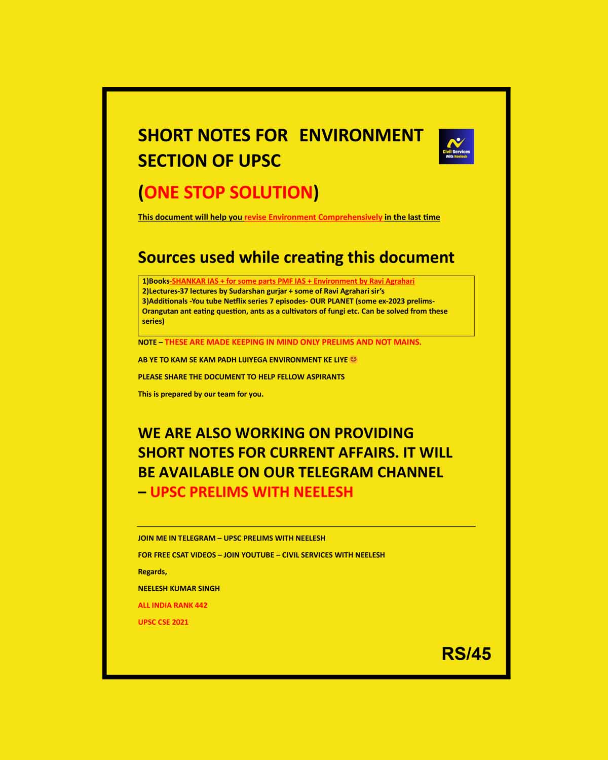 NEELESH KUMAR SINGH RANK-442 ENVIRONMENT SHORT TOPPERS NOTES ENGLISH {BLACK AND WHITE}