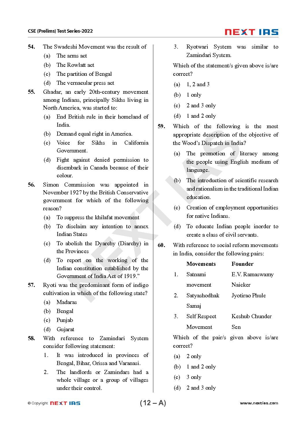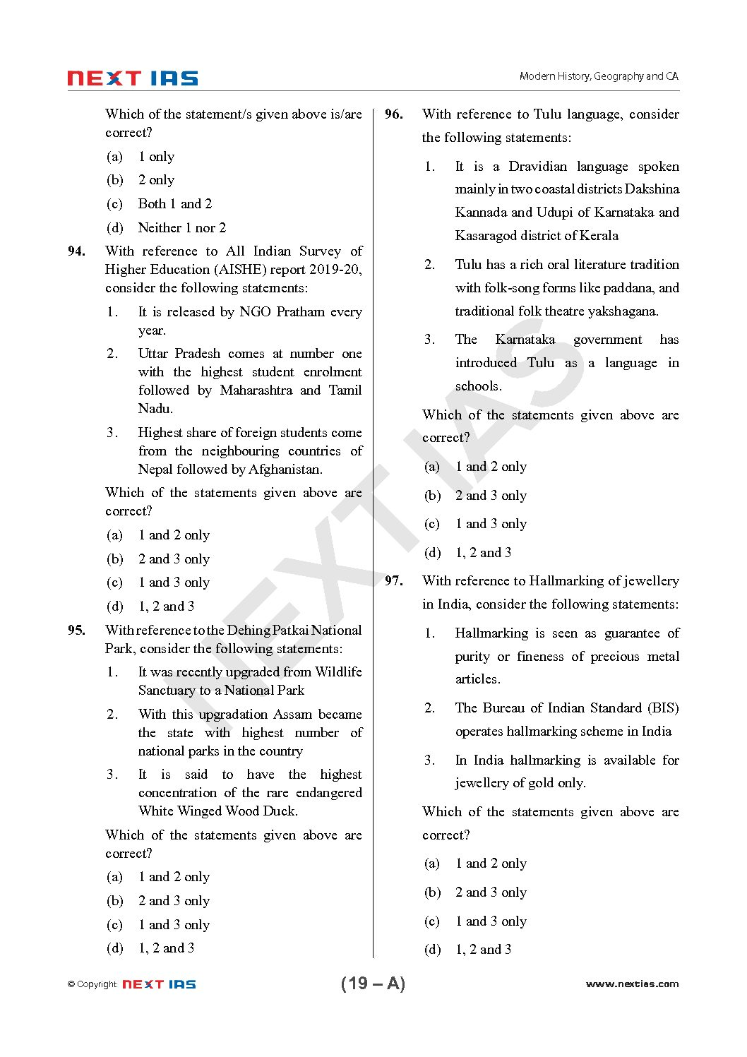 / NEXT IAS 2022 PRELIMS TEST-1- (TEST CODE- 221001) (BLACK & WHITE)