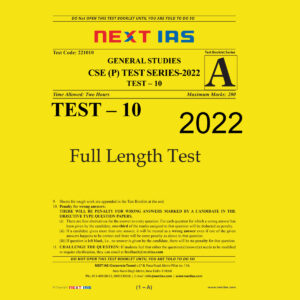 NEXTIAS 2022 TEST-10 (TEST CODE-221010) GENERAL STUDIES CSE (P) TEST SERIES 2022 SUBJECT-FULL LENGTH TEST (BLACK & WHITE)