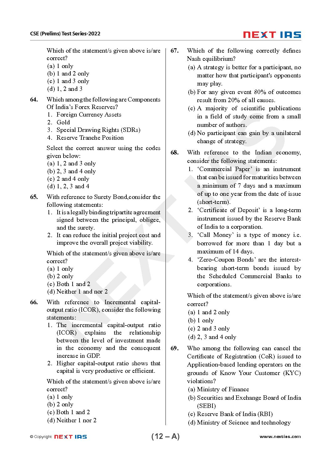 NEXT IAS 2022 TEST-22 TEST CODE-221022) GENERAL STUDIES CSE (P) TEST SERIES (FULL LENGTH TEST) (MOCK TEST-2) (BLACK & WHITE)