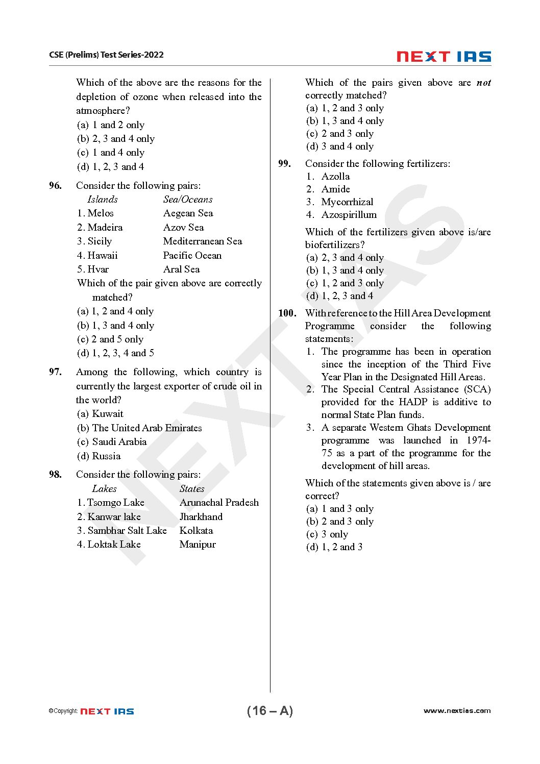 NEXT IAS 2022 TEST-24 TEST CODE-221022) GENERAL STUDIES CSE (P) TEST SERIES (FULL LENGTH TEST) (MOCK TEST-4) (BLACK & WHITE)