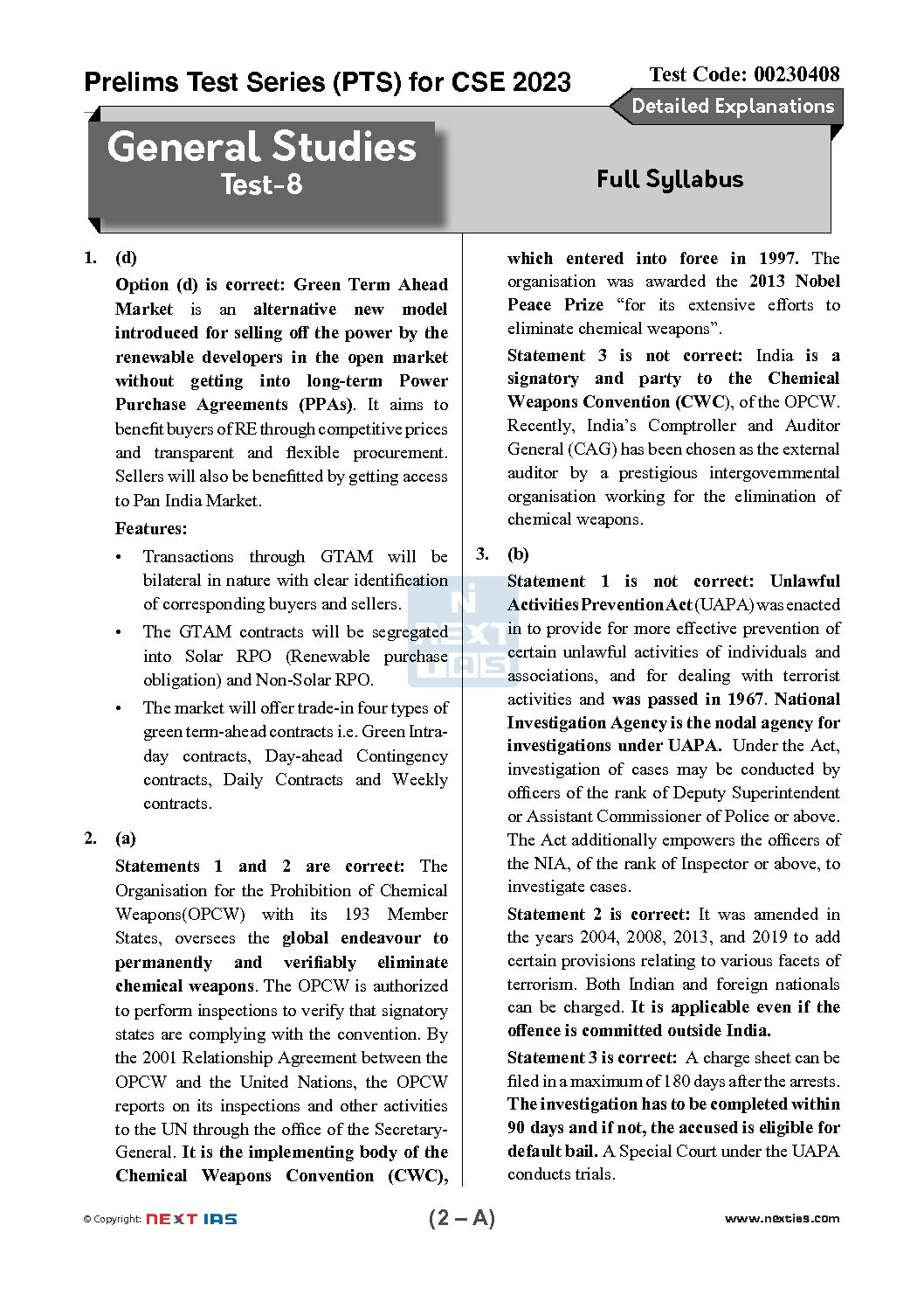 NEXT IAS 2023 TEST-08 (FULL SYLLABUS) 2023 CSE PRELIMS TEST SERIES (BLACK & WHITE)