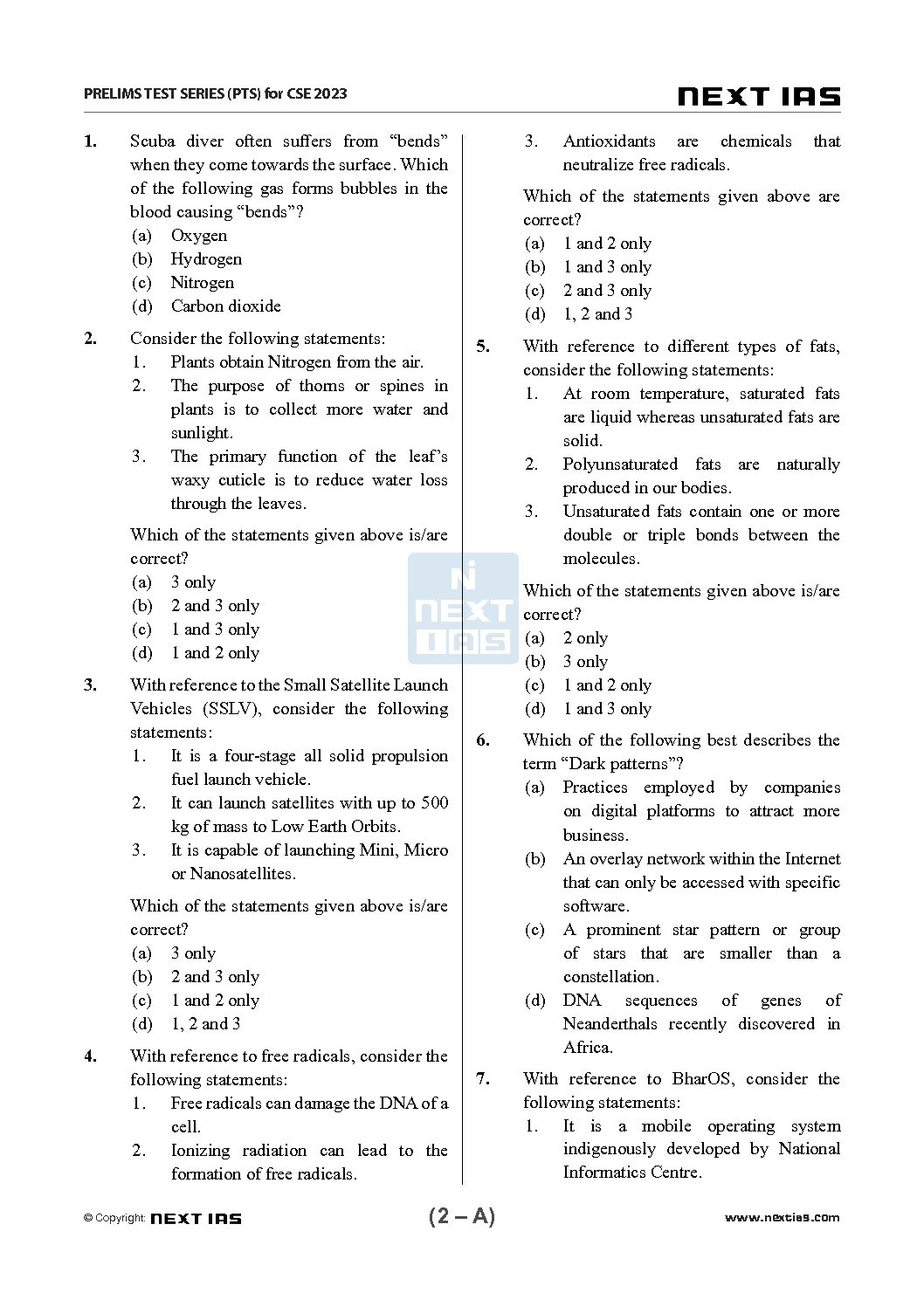 / NEXT IAS 2023 TEST-10 (FULL SYLLABUS) 2023 CSE PRELIMS TEST SERIES (BLACK & WHITE)