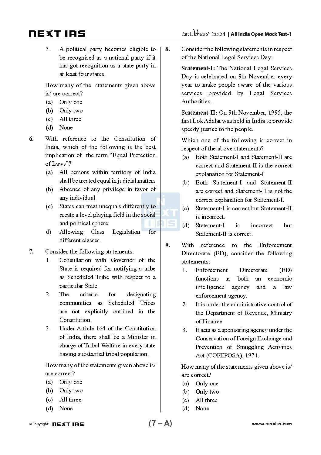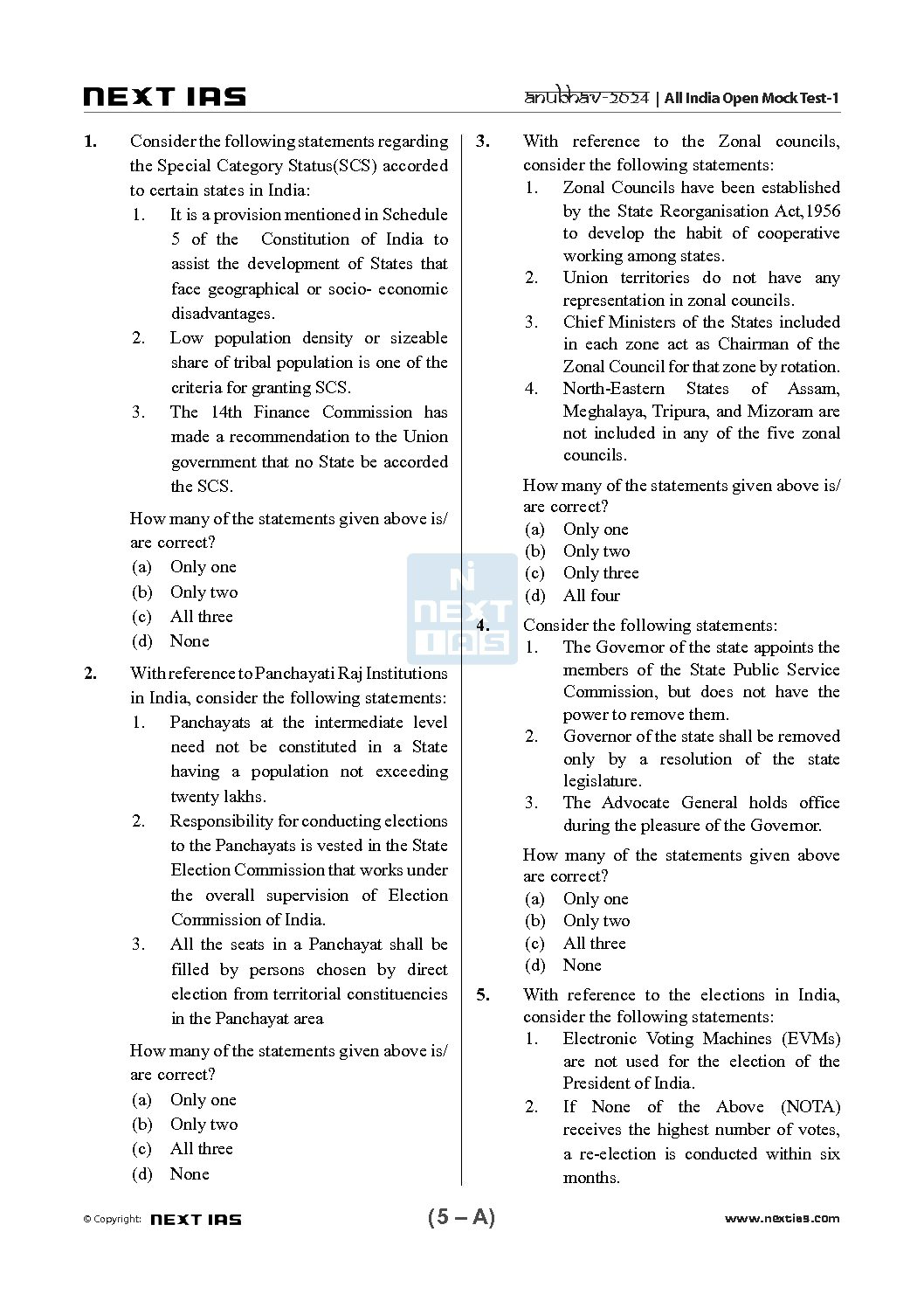 NEXT IAS 2024 ALL INDIA MOCK ANUBHAV TEST-1 2024 FINAL ENGLISH {BLACK AND WHITE} quantity