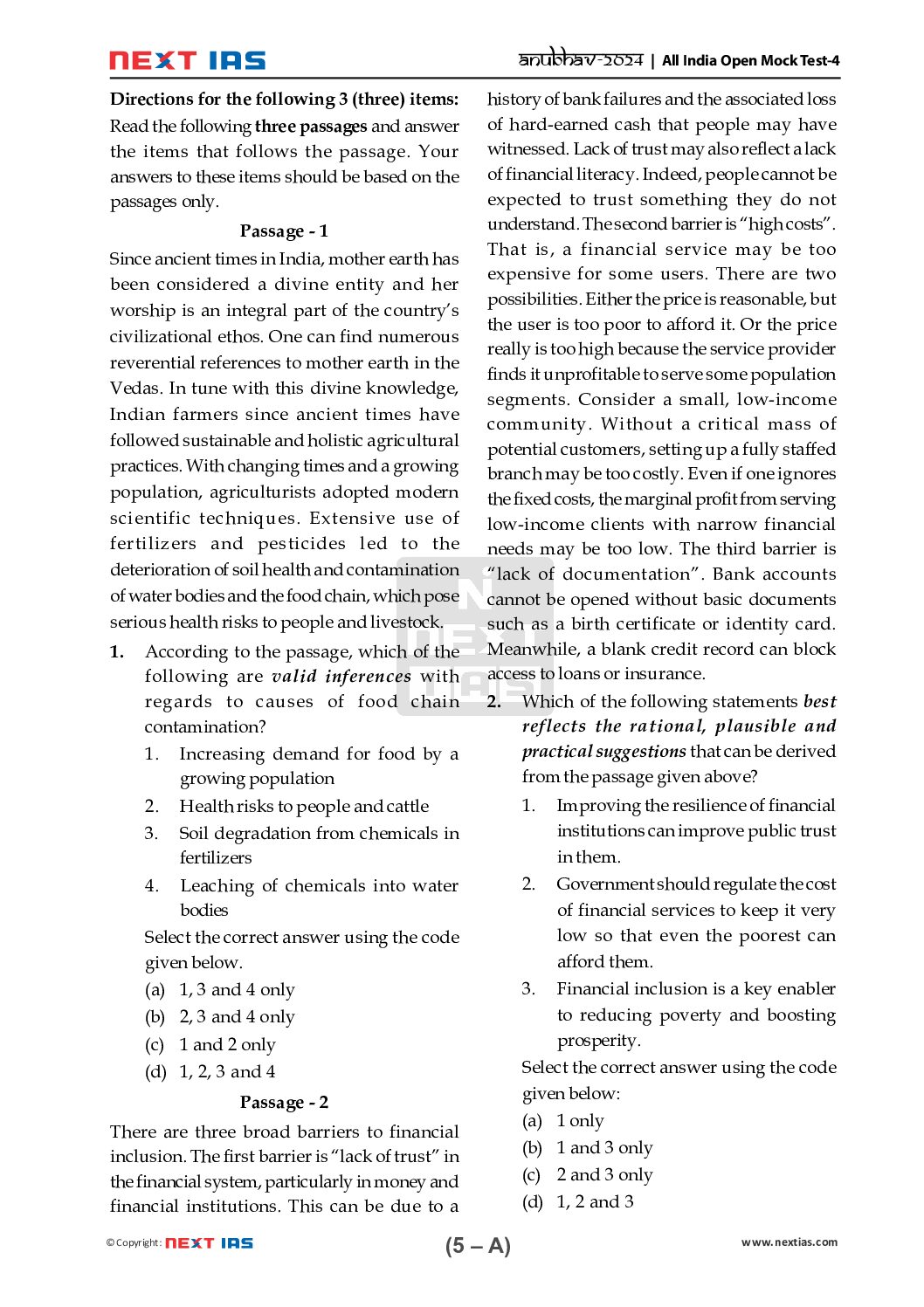 / NEXT IAS 2024 ALL INDIA MOCK CSAT ANUBHAV TEST-4 2024 FINAL {ENGLISH} {BLACK AND WHITE}
