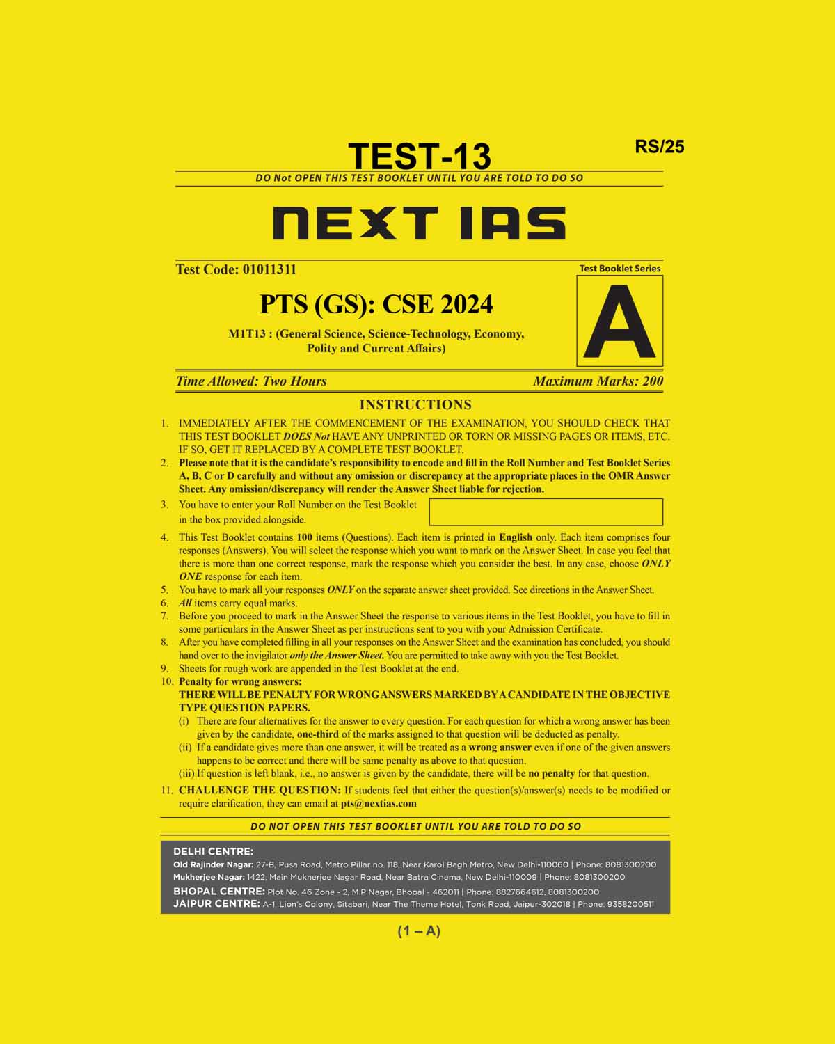 / NEXT IAS 2024 PT TEST-13 2024 FINAL ENGLISH {BLACK AND WHITE}