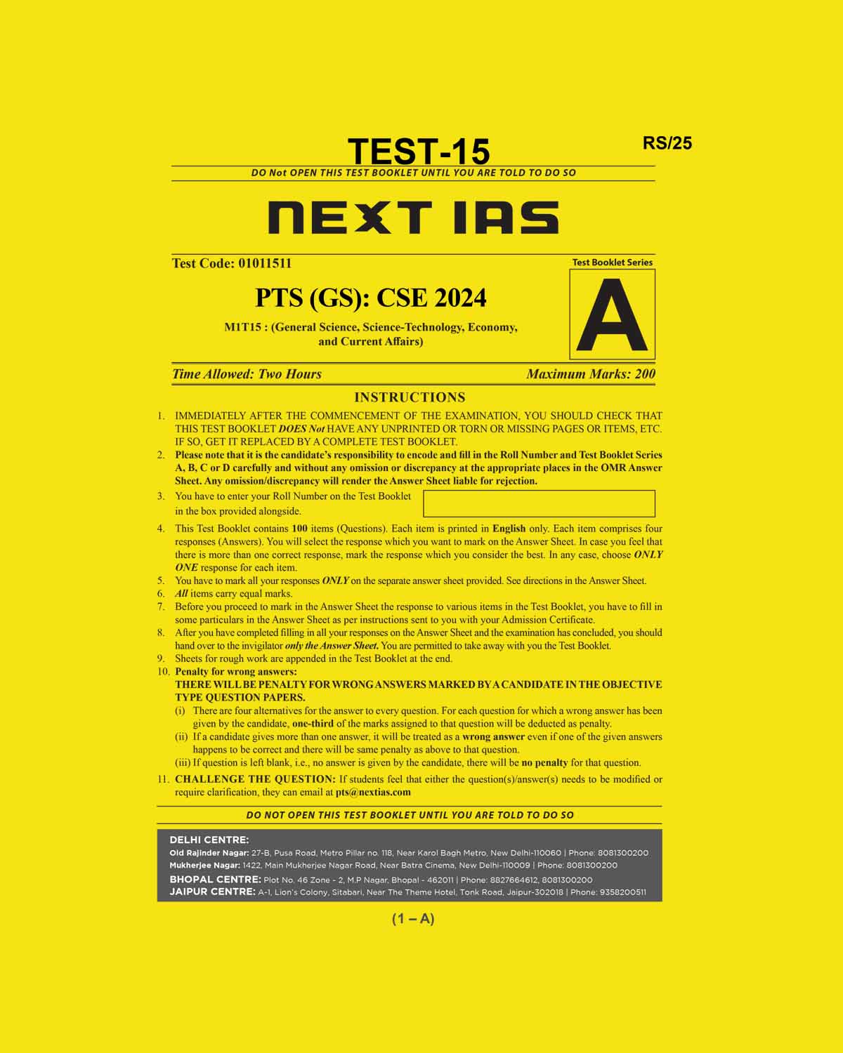 / NEXT IAS 2024 PT TEST-15 2024 FINAL ENGLISH {BLACK AND WHITE}