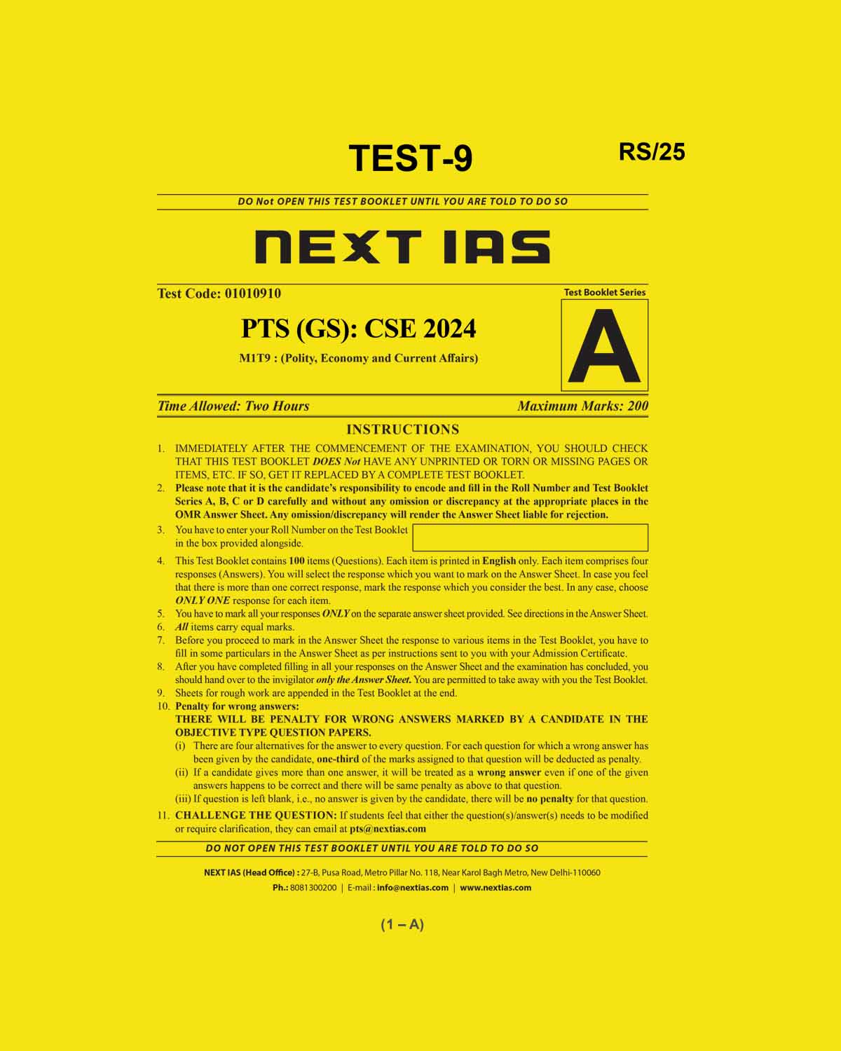 / NEXT IAS 2024 PT TEST-9 2024 FINAL ENGLISH {BLACK AND WHITE}