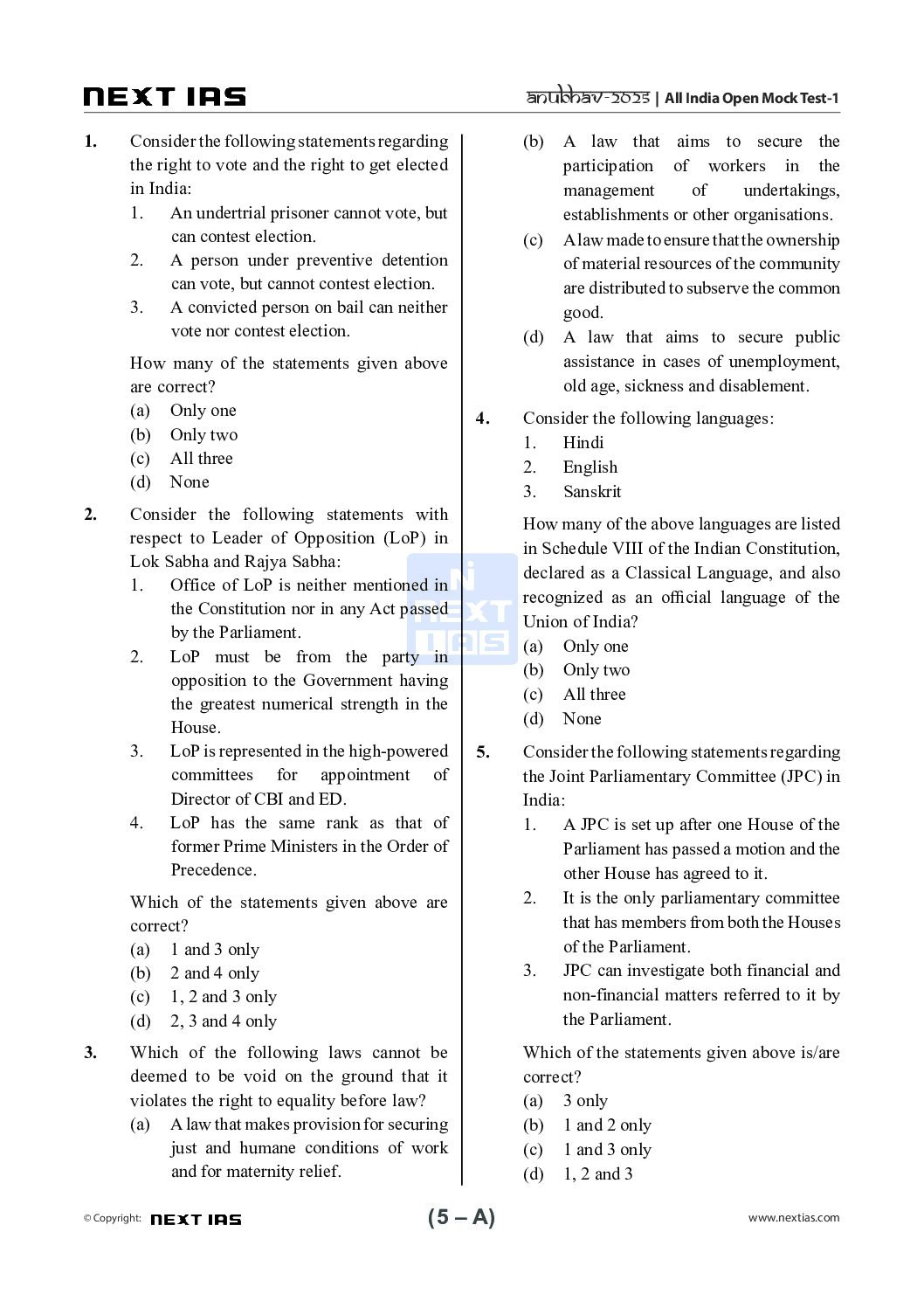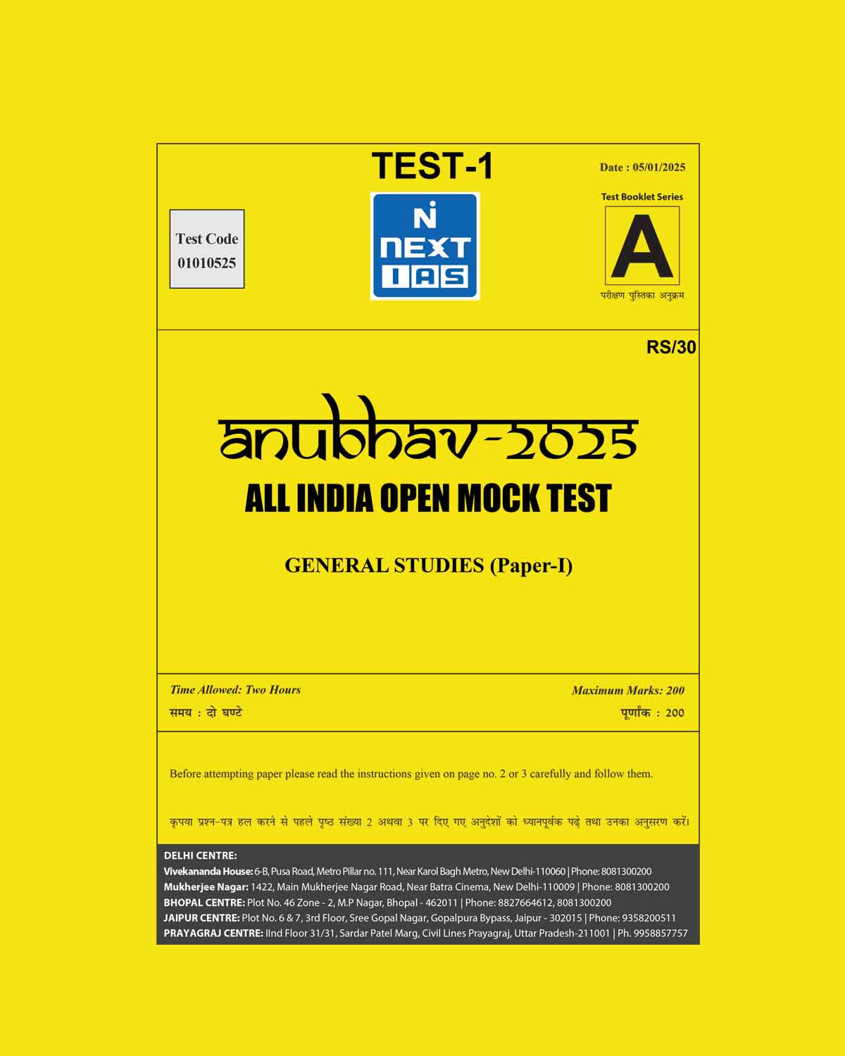 / NEXT IAS 2025 ANUBHAV ALL INDIA MOCK TEST-1 2025 FINAL (ENGLISH) {BLACK AND WHITE}