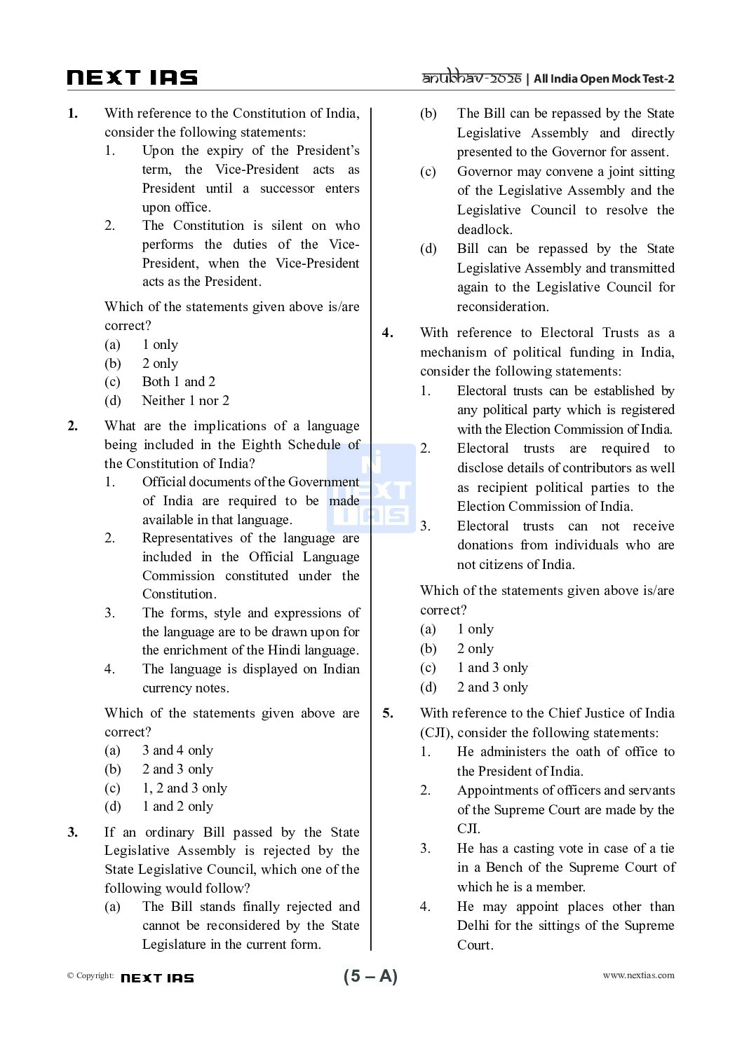 / NEXT IAS 2026 ANUBHAV TEST-2 2026 FINAL (ENGLISH) {BLACK AND WHITE}