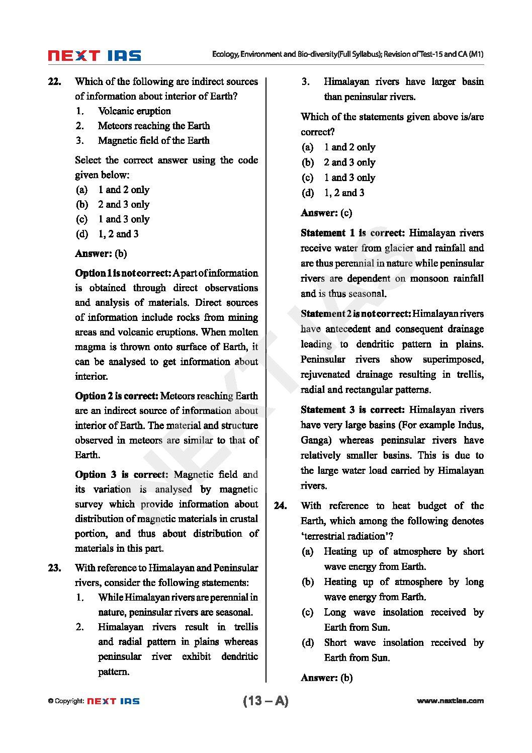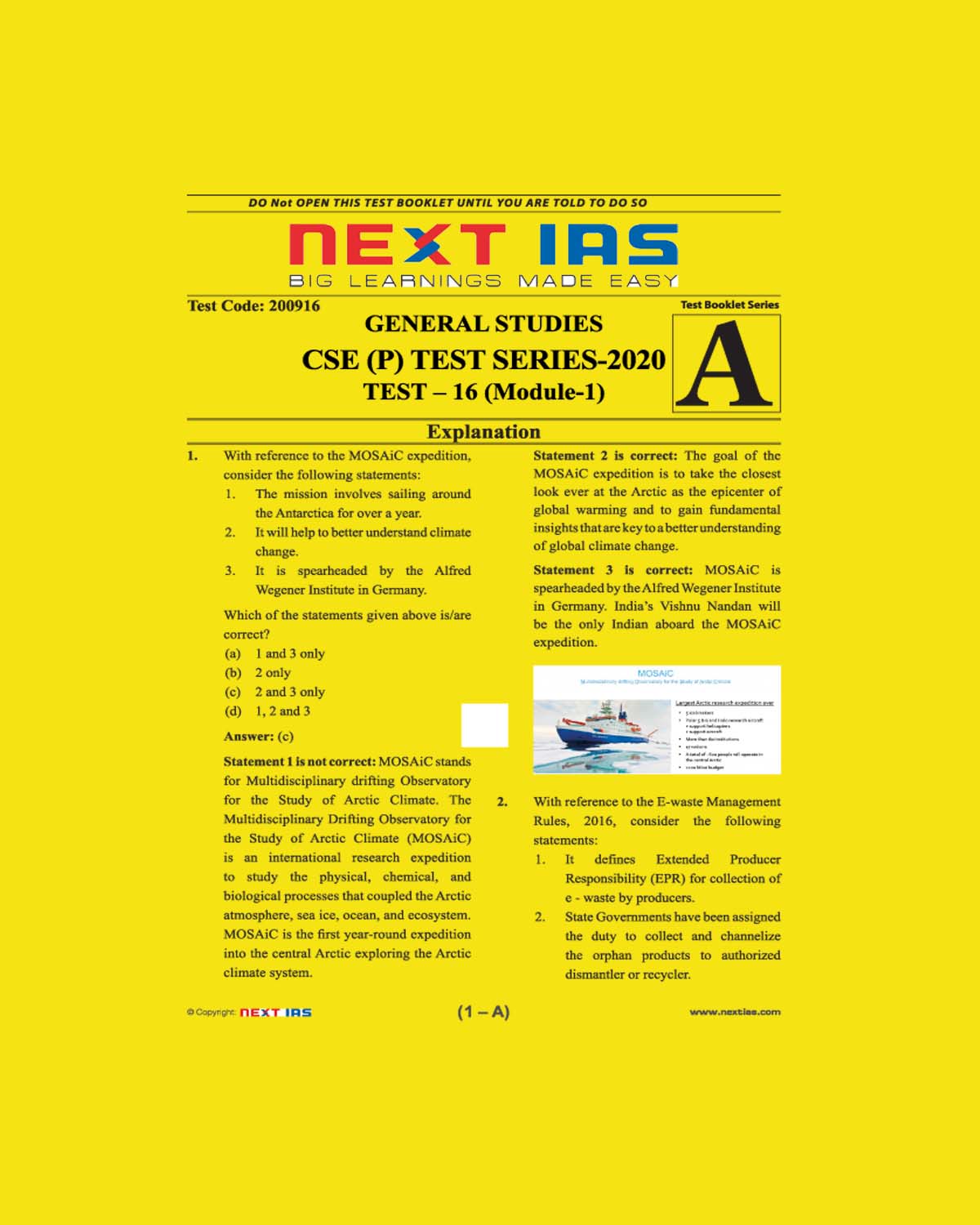 / NEXT IAS CSE(P) TEST SERIES-2020 TEST-16 (MODULE-1)