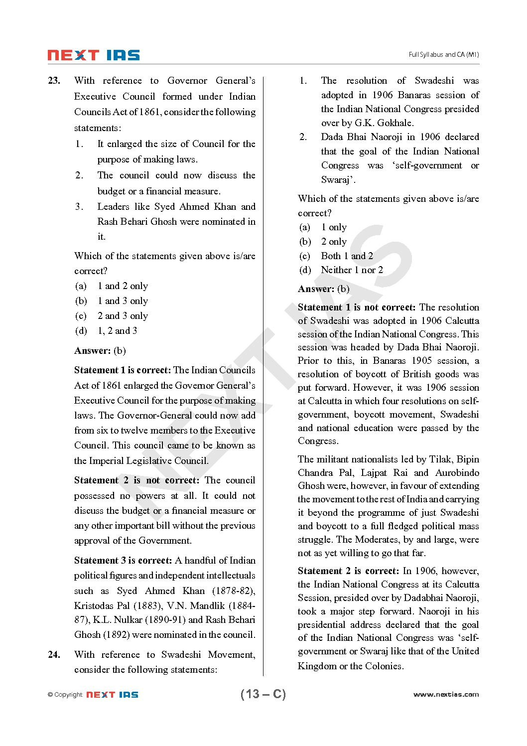 NEXT IAS CSE(P) TEST SERIES-2020 TEST- 24 (MODULE-1)