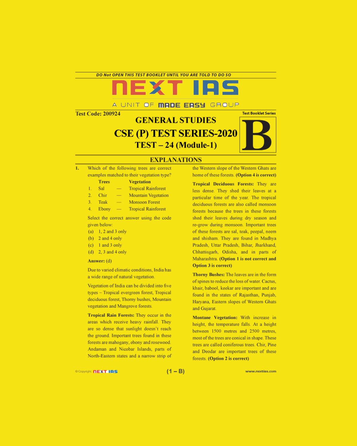 / NEXT IAS CSE(P) TEST SERIES-2020 TEST- 24 (MODULE-1)