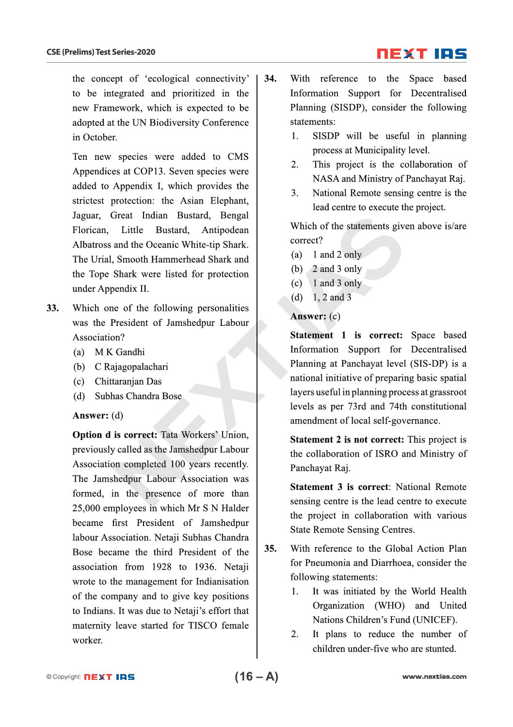 / NEXT IAS CSE(P) TEST SERIES-2020 TEST- 27 (MODULE-1)