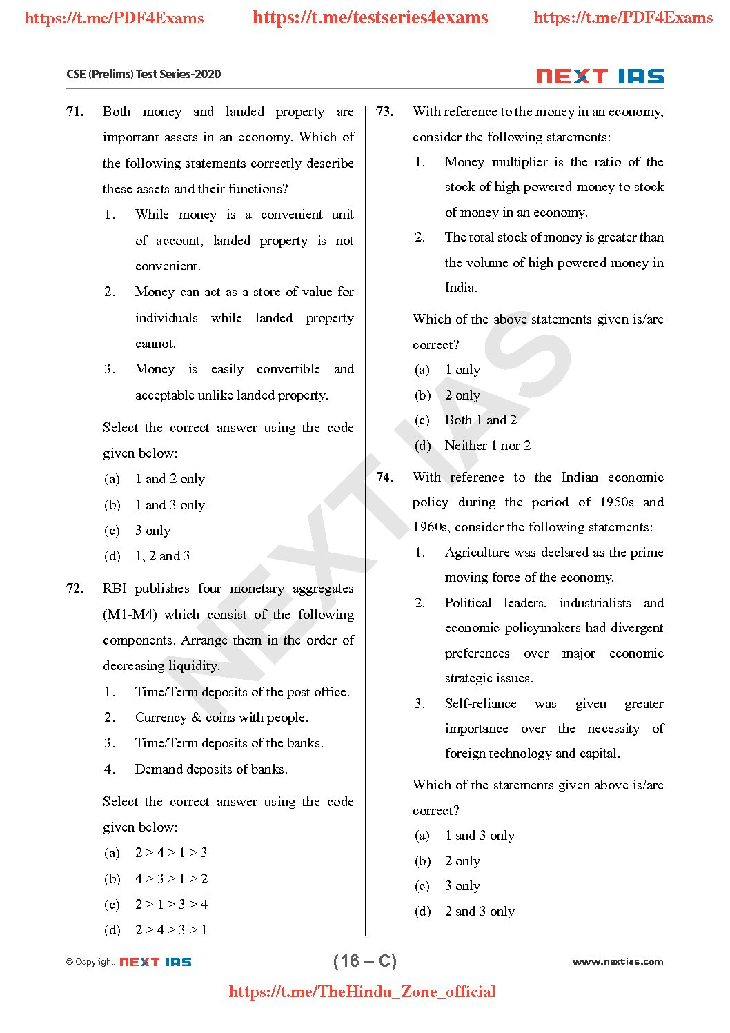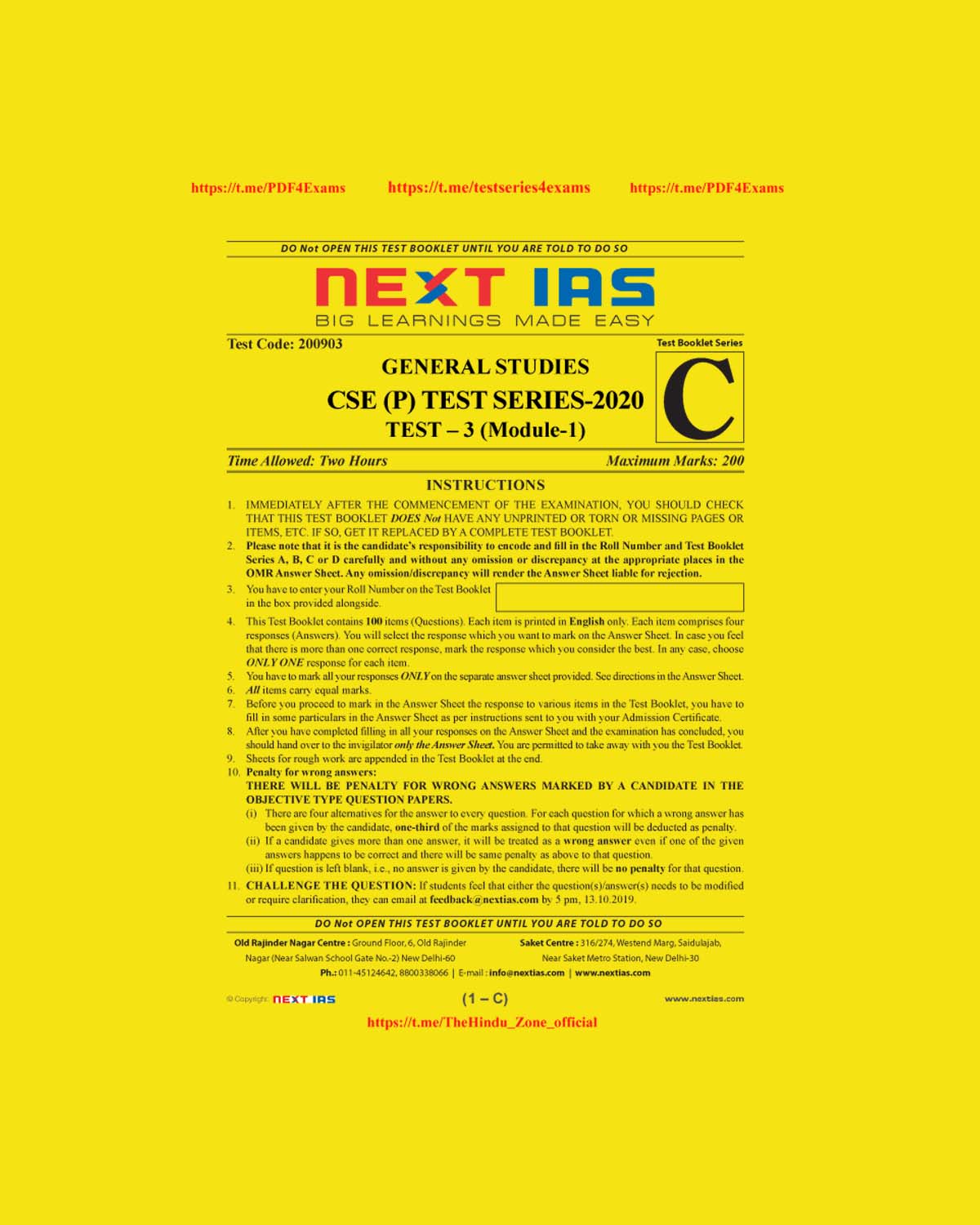 / NEXT IAS CSE(P) TEST SERIES-2020 TEST-3 (MODULE-1)
