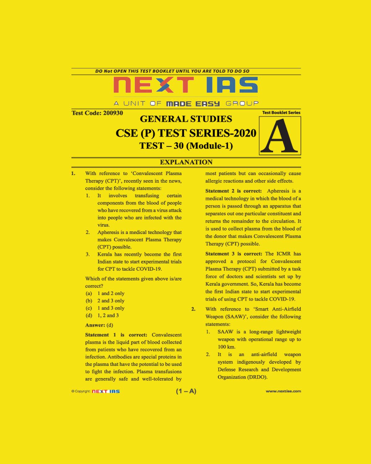 / NEXT IAS CSE(P) TEST SERIES-2020 TEST- 30 (MODULE-1)