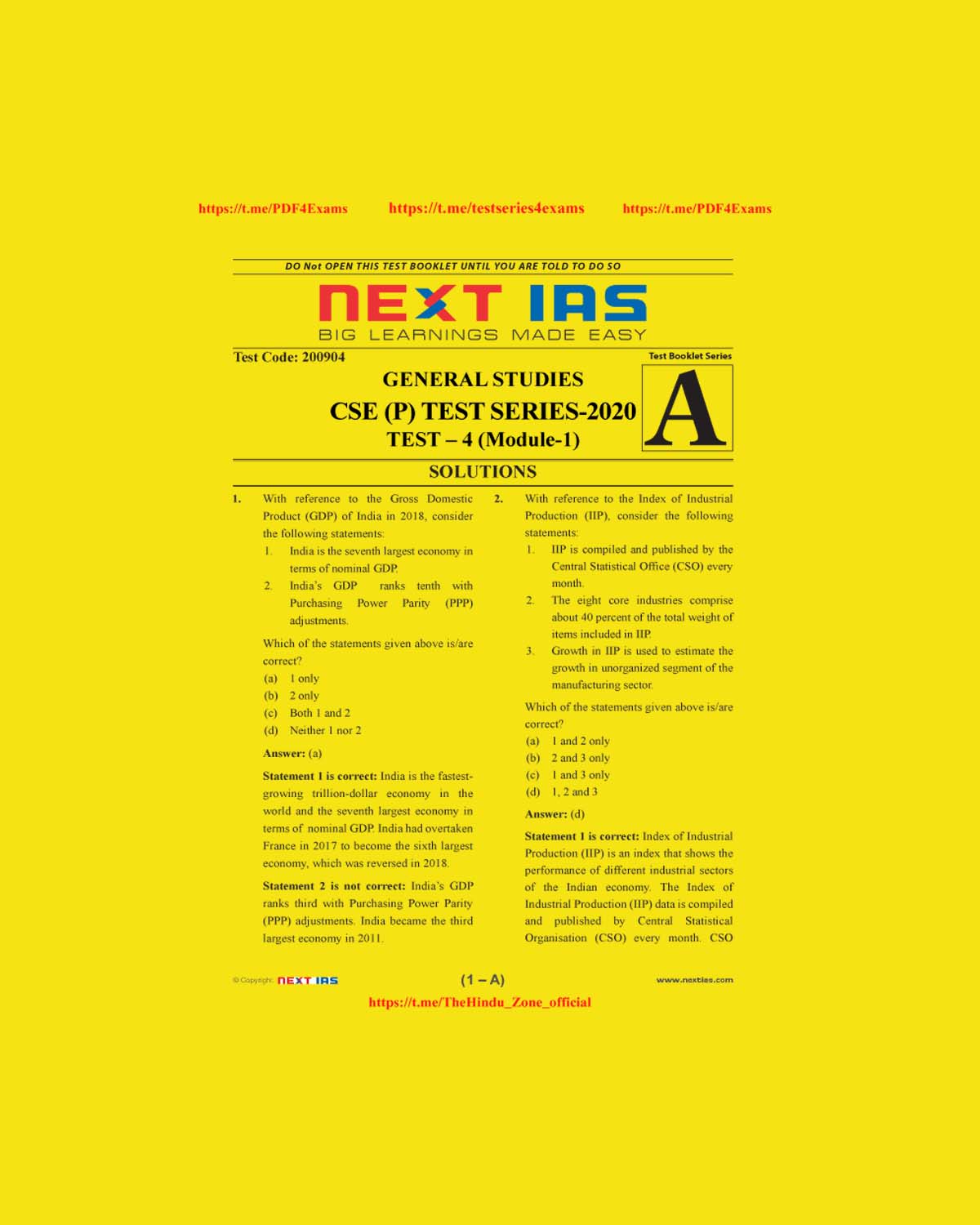 / NEXT IAS CSE(P) TEST SERIES-2020 TEST-4 (MODULE-1)