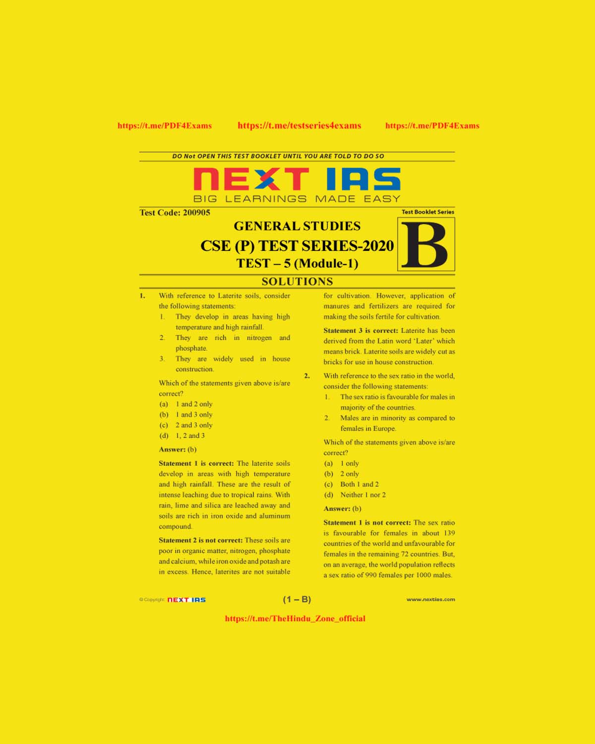 / NEXT IAS CSE(P) TEST SERIES-2020 TEST-5 (MODULE-1)