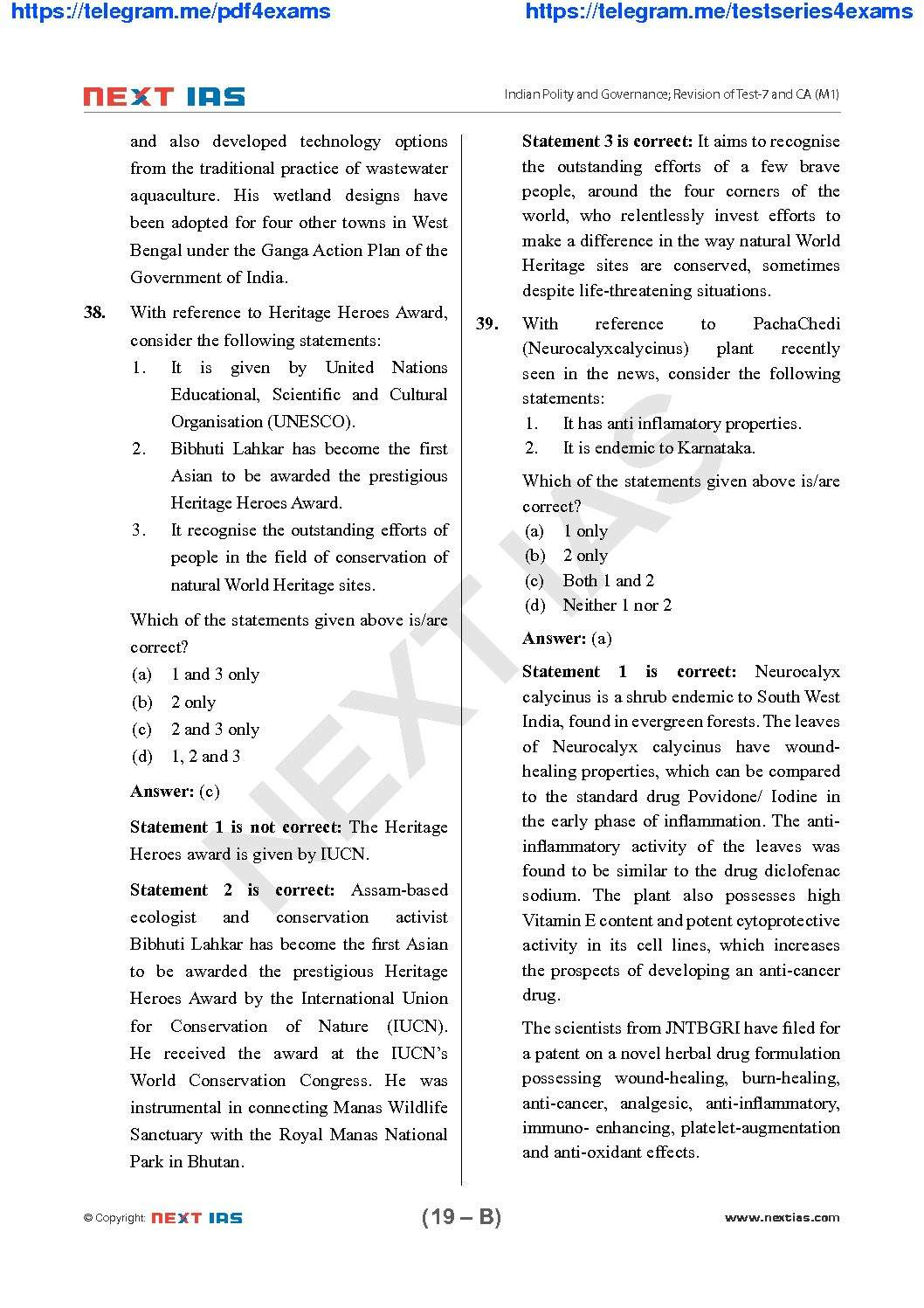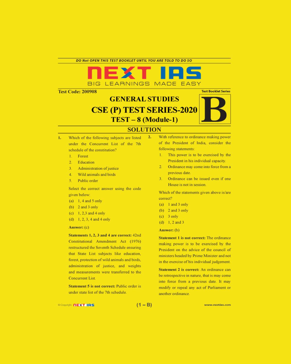 / NEXT IAS CSE(P) TEST SERIES-2020 TEST-8 (MODULE-1)