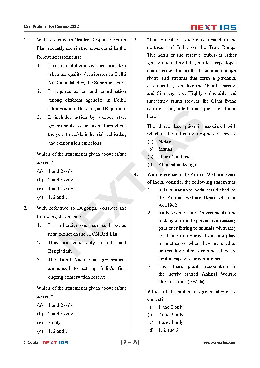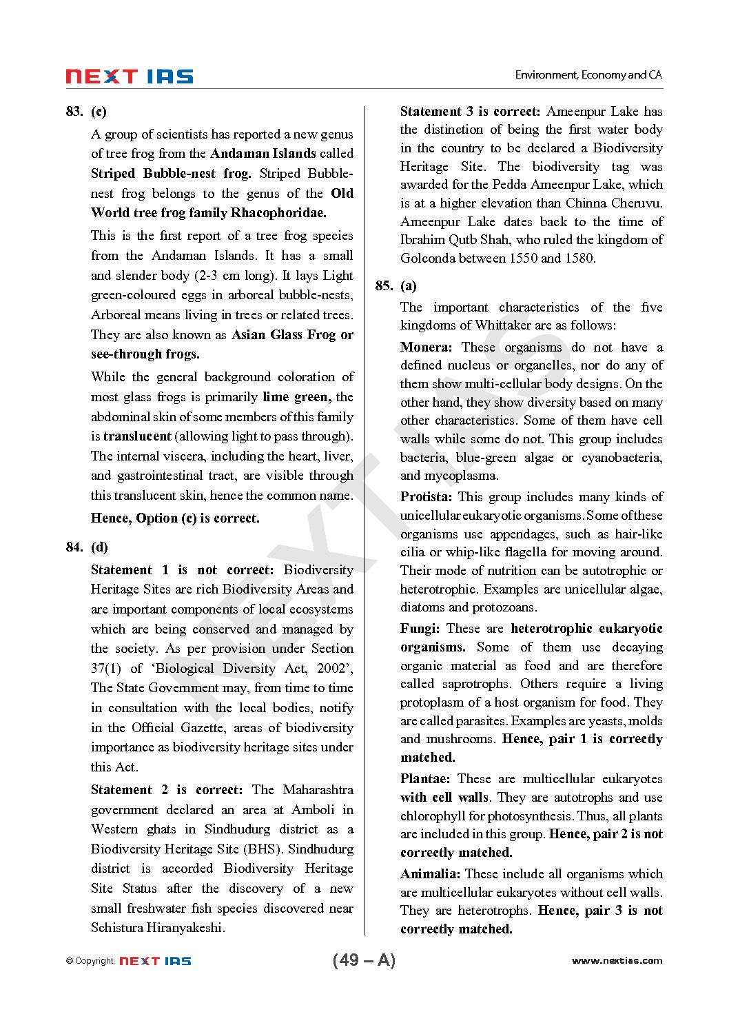 NEXTIAS 2022 TEST-8 (TEST CODE-221008)-GENERAL STUDIES CSE (P) TEST SERIES 2022ECOLOGY , ENVIRONMENT AND BIO-DIVERSITY ECONOMY-REVISION OF TEST-7+CURRENT AFFAIRS –TILL DATE(BLACK & WHITE)