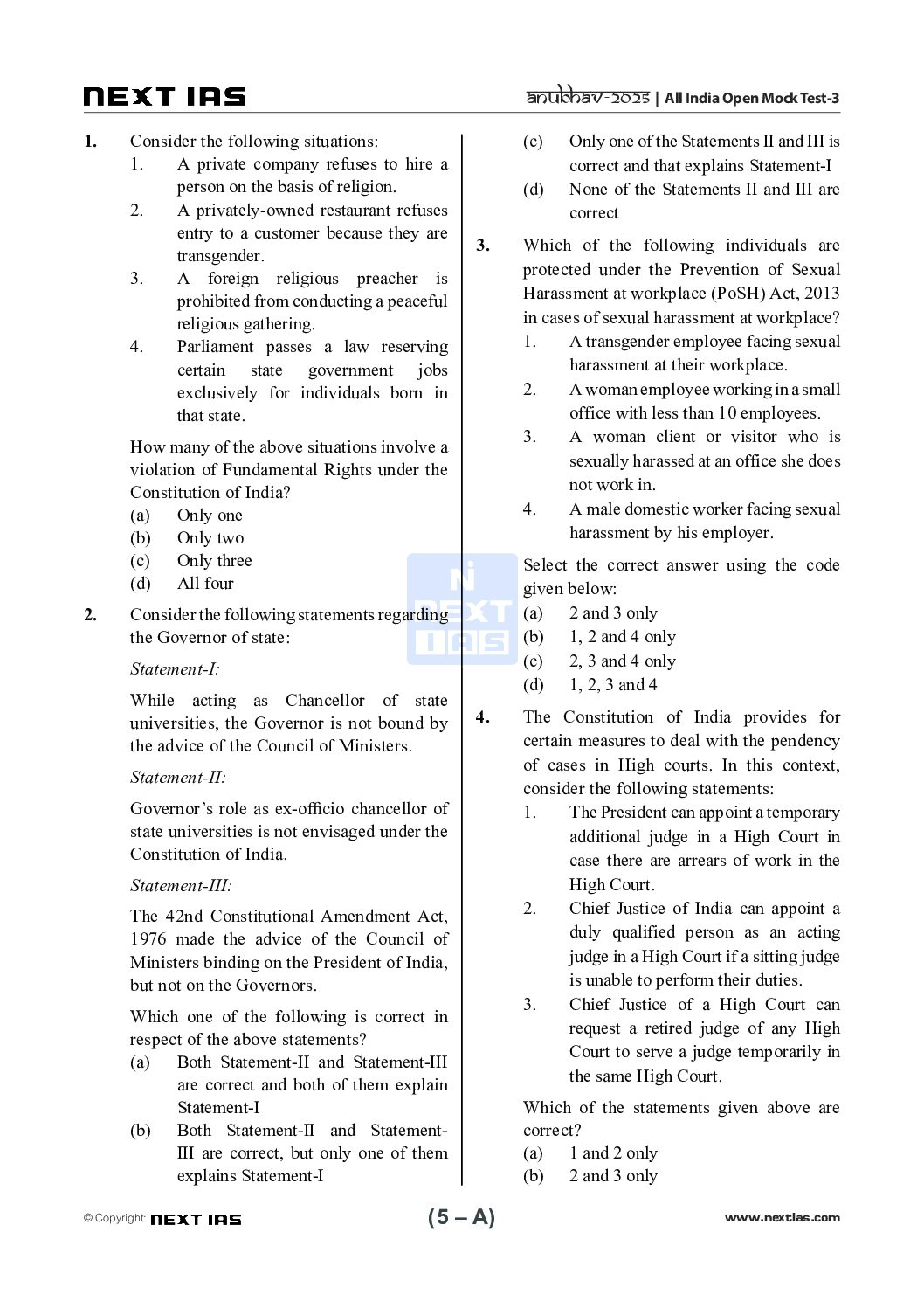 / NEXTIAS PTS 2025 ANUBHAV ALL INDIA MOCK TEST-3 2025 FINAL (ENGLISH) {BLACK AND WHITE}