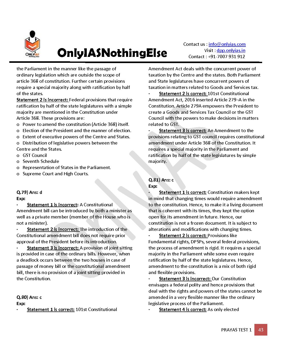 / ONLY IAS 2022 PRAYAS TEST -1 (POLITY) (BLACK & WHITE)