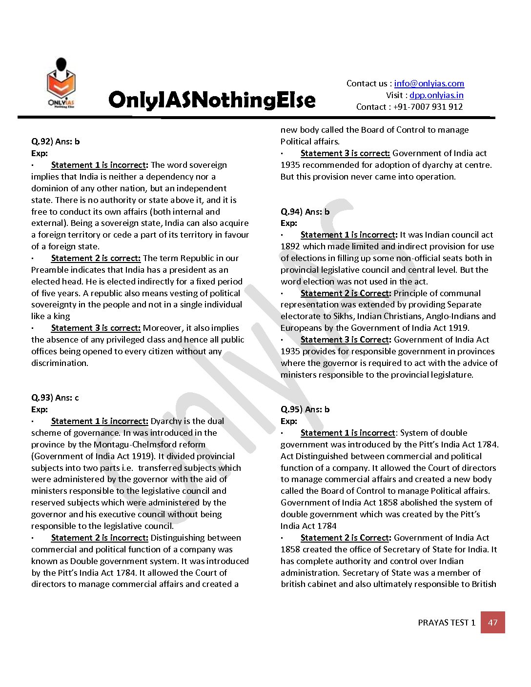 ONLY IAS 2022 PRAYAS TEST -1 (POLITY) (BLACK & WHITE)