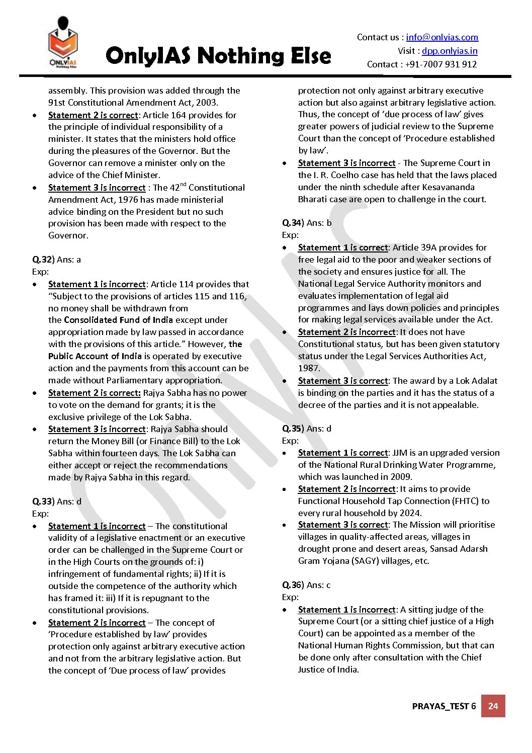 / ONLY IAS 2022 PRAYAS TEST -6 (POLITY) (BLACK & WHITE)