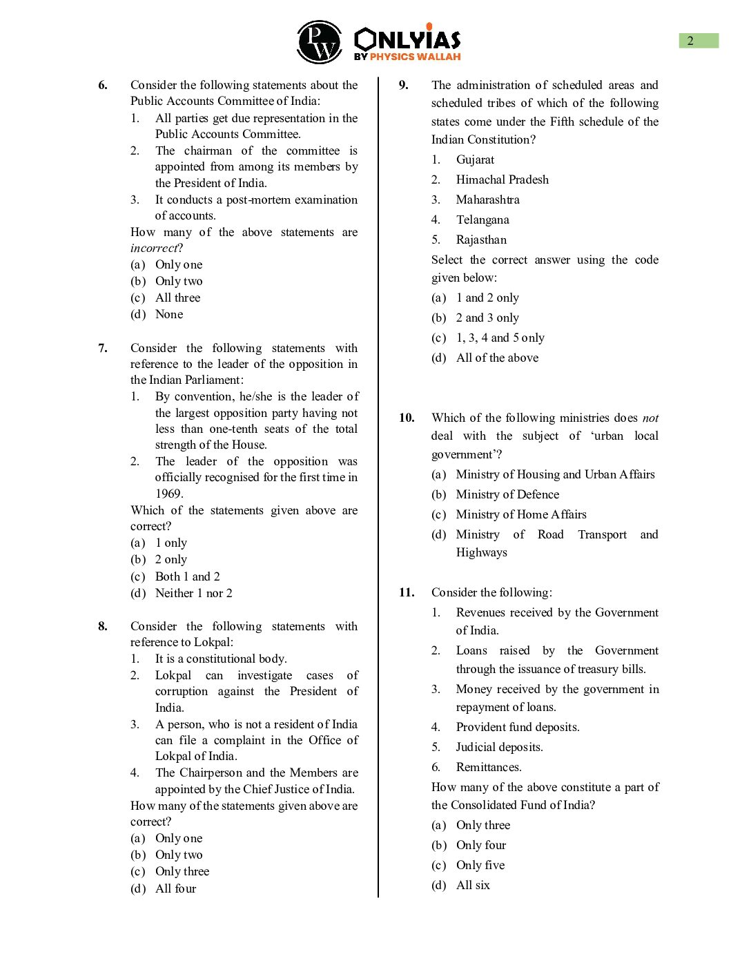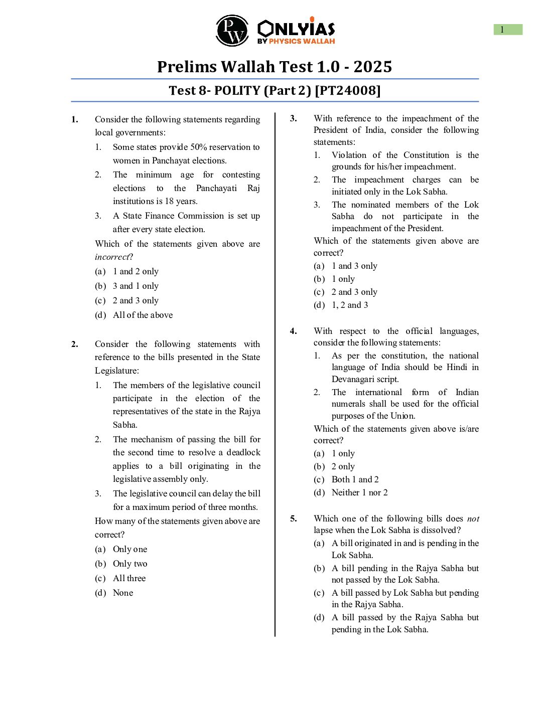 / ONLY IAS 2025 TEST-8 POLITY PART-2 2025 FINAL (ENGLISH) {BLACK AND WHITE}