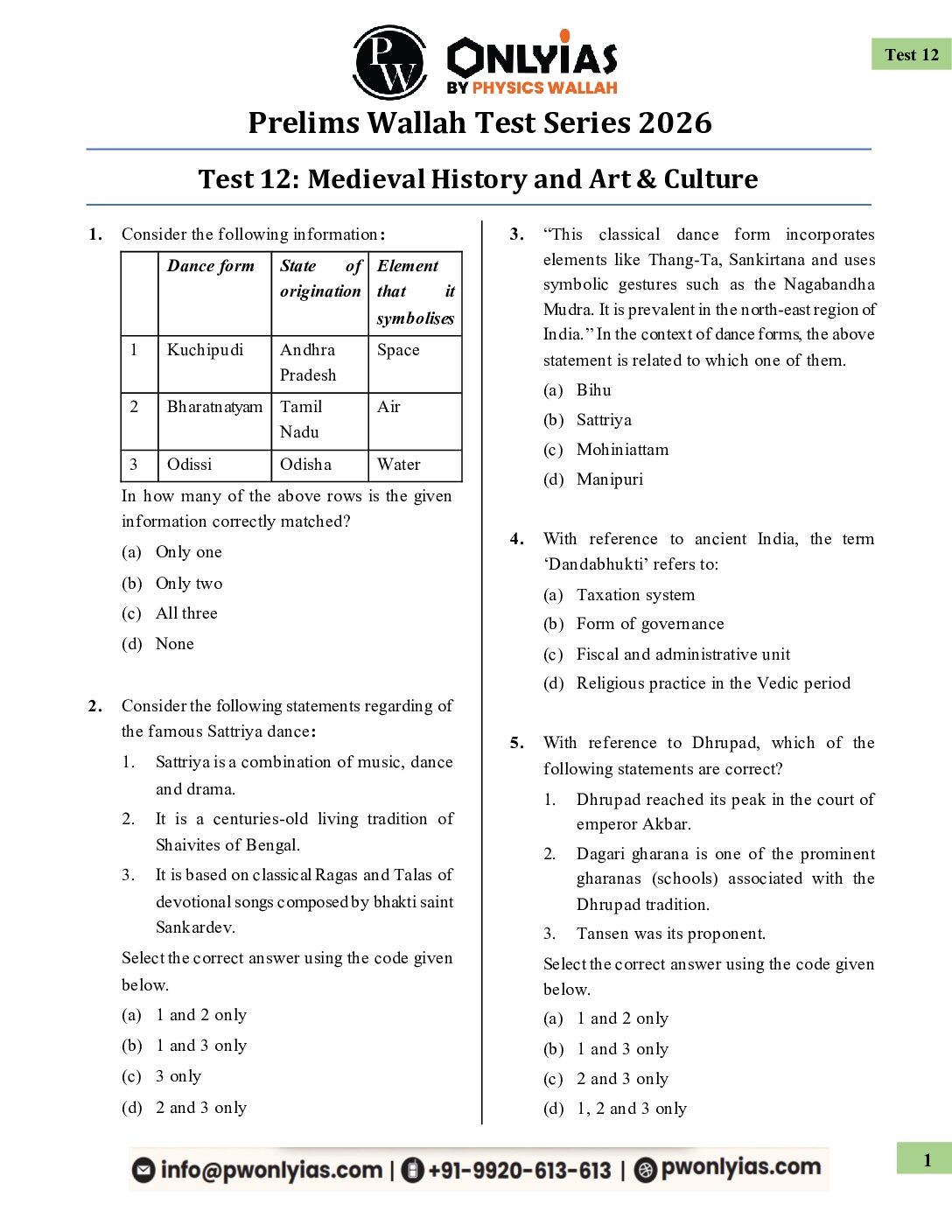 / ONLY IAS 2026 TEST-12 (MEDIEVAL HISTORY AND ART&CULTURE) 2026 FINAL (ENGLISH) {BLACK AND WHITE}