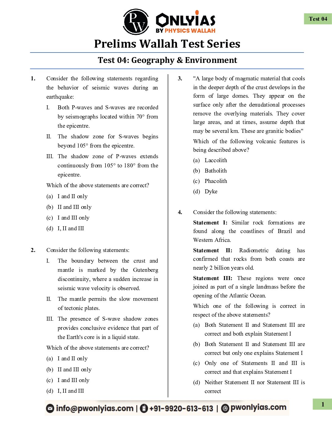 / ONLY IAS 2026 TEST-4 (NCERT-GEOGRAPHY & ENVIRONMENT) 2026 FINAL (ENGLISH) {BLACK AND WHITE}