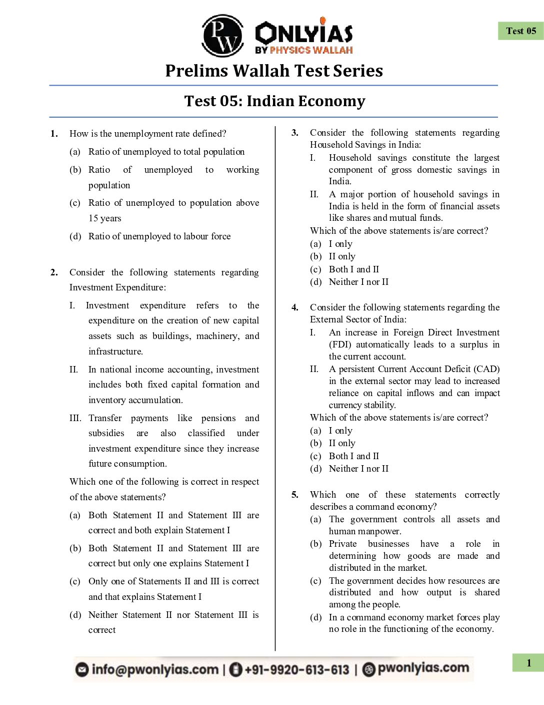 / ONLY IAS 2026 TEST-5 (NCERT-INDIAN ECONOMY) 2026 FINAL (ENGLISH) {BLACK AND WHITE}