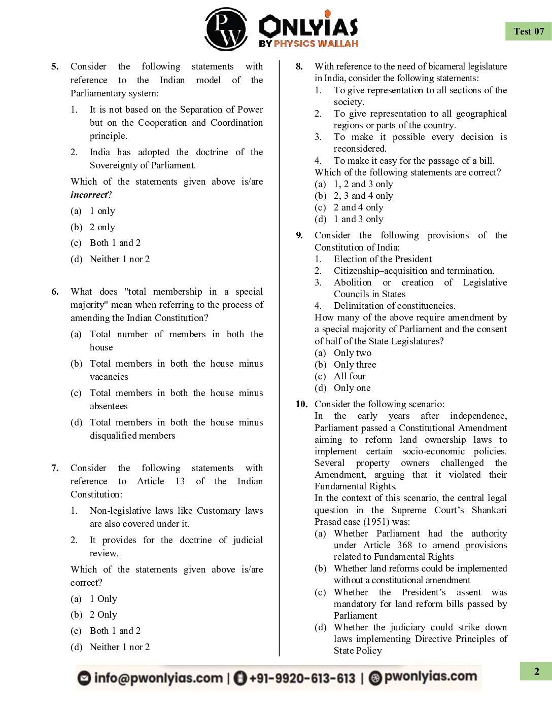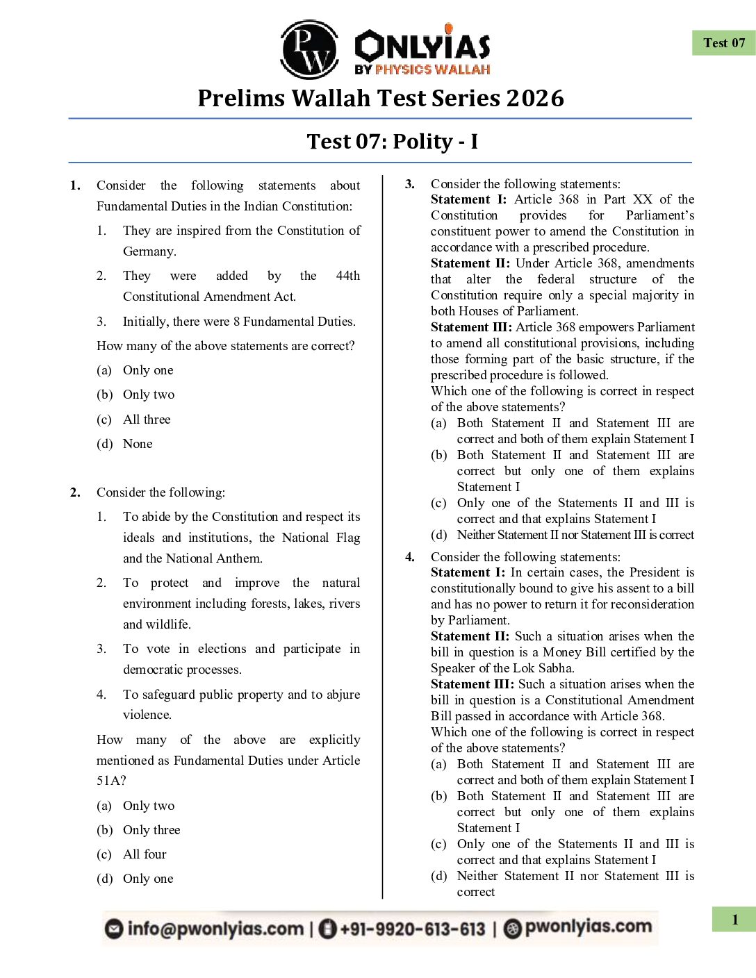 / ONLY IAS 2026 TEST-7 (POLITY-I) 2026 FINAL (ENGLISH) {BLACK AND WHITE}