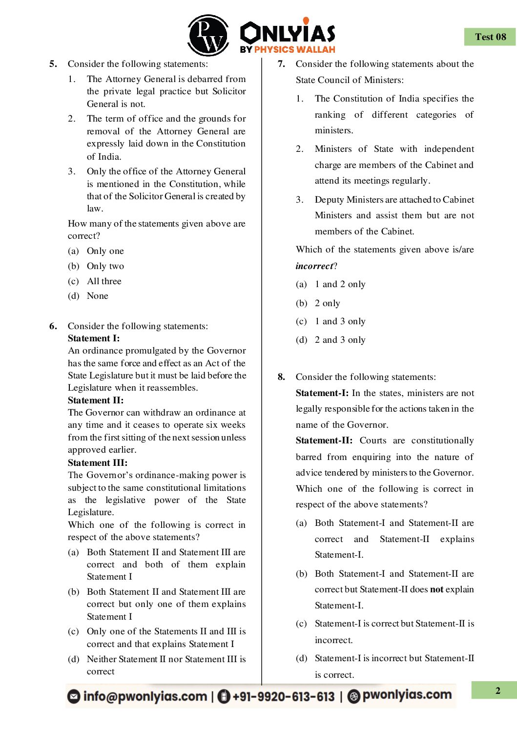 / ONLY IAS 2026 TEST-8 (POLITY-II) 2026 FINAL (ENGLISH) {BLACK AND WHITE}