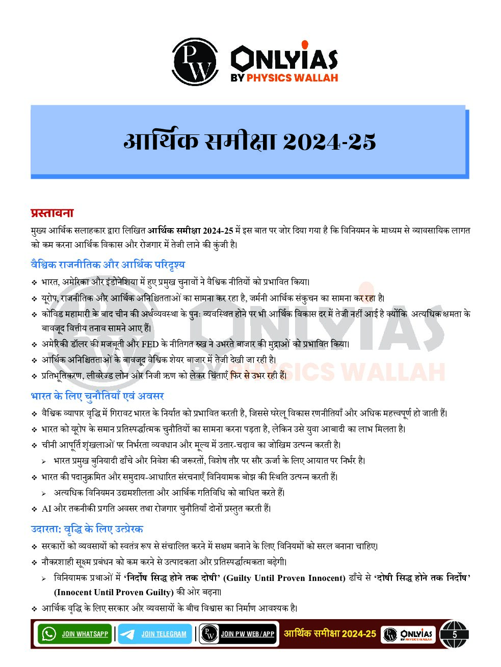 / ONLY IAS ECONOMIC SURVEY 2024-2025 FINAL SUMMARY (HINDI) {BLACK AND WHITE}